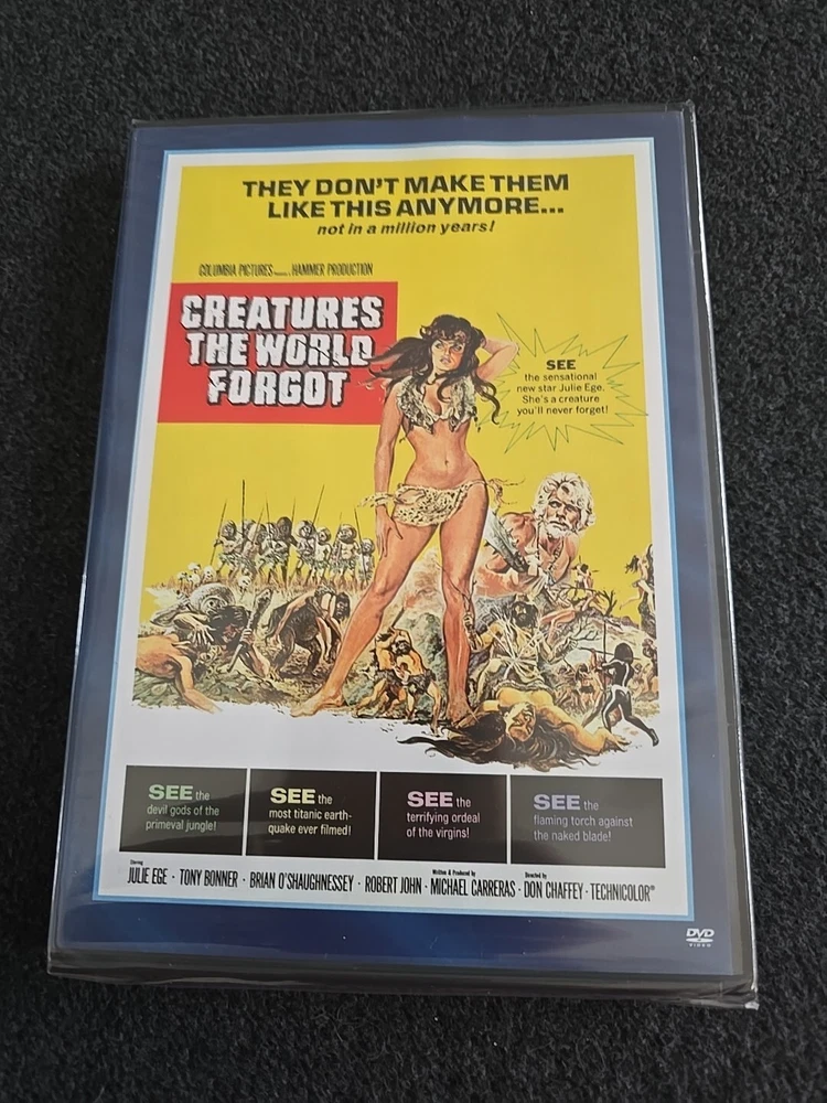 This DVD features the fantasy movie "Creatures the World Forgot". The story takes you on an adventure through a forgotten world filled with strange creatures and exciting battles. The movie is presented in English language and is compatible with DVD players. The DVD is a great addition to any movie collection, especially for fans of the fantasy genre. It is perfect for a family movie night or a relaxing evening at home. Get ready to embark on a journey like no other with "Creatures the World Forgot".