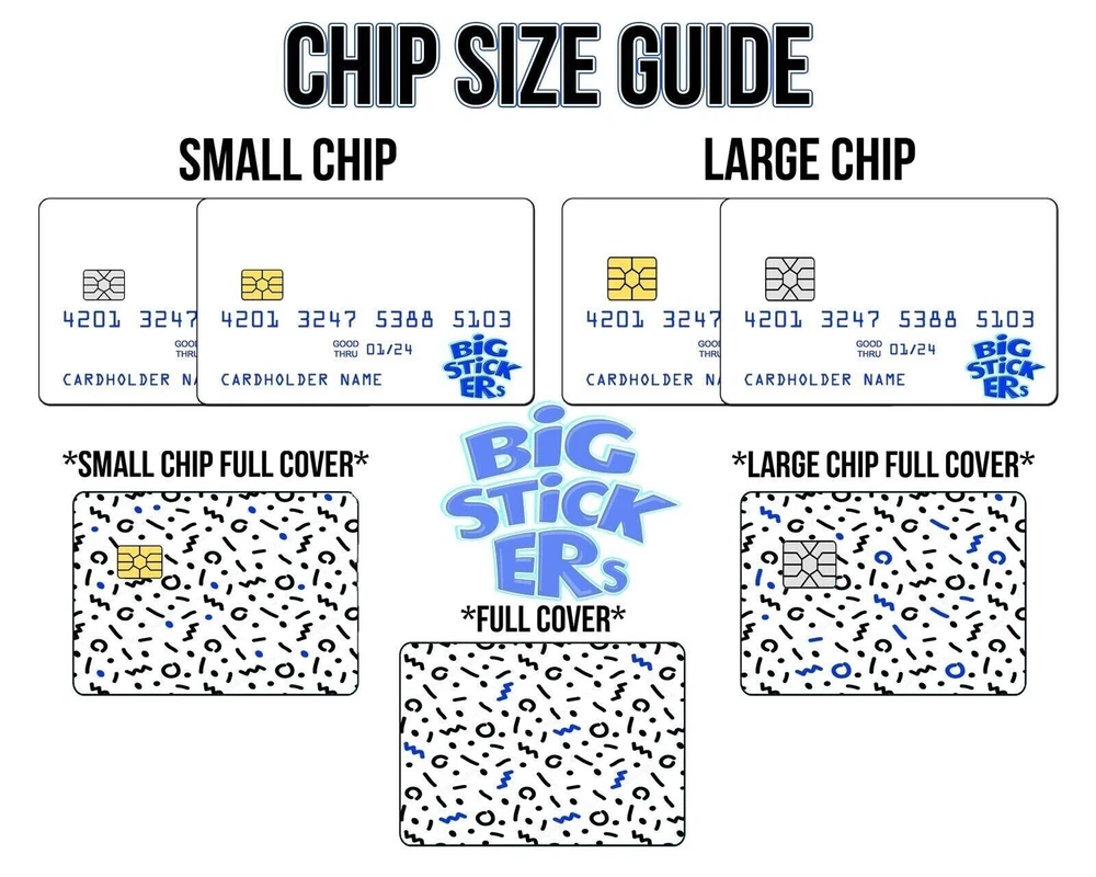 💳 Credit Card SMART Sticker, Credit Card Skin Cover, Debit Card Skin Cover, EBT Card Skin Cover, Vinyl Decal Sticker for most cards 💳 Shipping Information: Our default free shipping option is via eBay Standard Envelope. Please be aware that while this method is cost-effective at only $0.63 per envelope, its tracking can sometimes be inaccurate or not update at all. If you desire more accurate and dependable tracking for your card skins, we recommend selecting our upgraded shipping option at checkout. By choosing the free shipping, you acknowledge and accept the potential limitations of the eBay Standard Envelope's tracking. Precision-Cut for Seamless Transactions: Each card skin is precision-cut with a margin of just a millimeter from the edge. This ensures seamless payments, whether you're swiping or using the chip at payment terminals. 🏆 Pay in style with eye-catching unique designs made to personalize your own credit or debit card. 💌 Each vinyl card skin comes ☝️ single with your pick of Gloss or Holographic finish . ✂️ Die cut with precision to fit any credit/debit. *Be sure to pick the appropriate chip placement and size for your card of choice. 📐 Sizing options include: “Small Chip” ,“Large Chip”, “Fully Covered no chip”. *The Chip Size Guide is located in the photo slides* 🔪 Scratch Resistant, the skin has a protective vinyl outer layer to help prevent scratching and damage. 🛠 Very simple to stick and apply. Just peel back chip side half way then align to corners and chip. After corners are aligned pull off paper backing slowly to lay and stick.