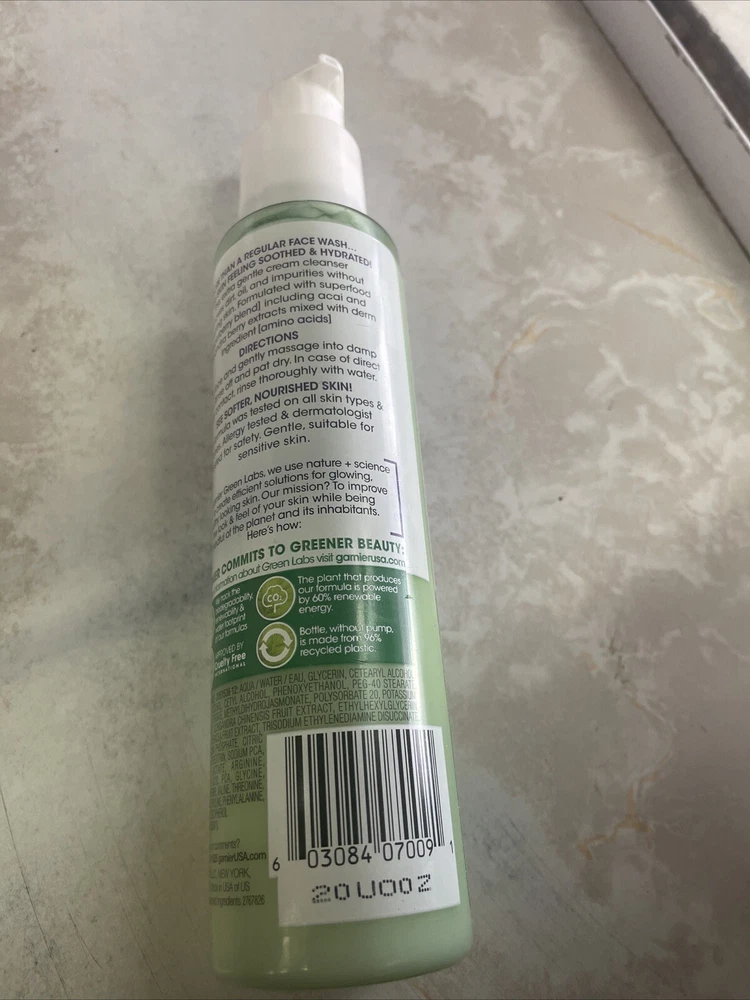 Garnier Green Labs Amino-Berry Soft Gentle Facial Cream Cleanser Hydrates。