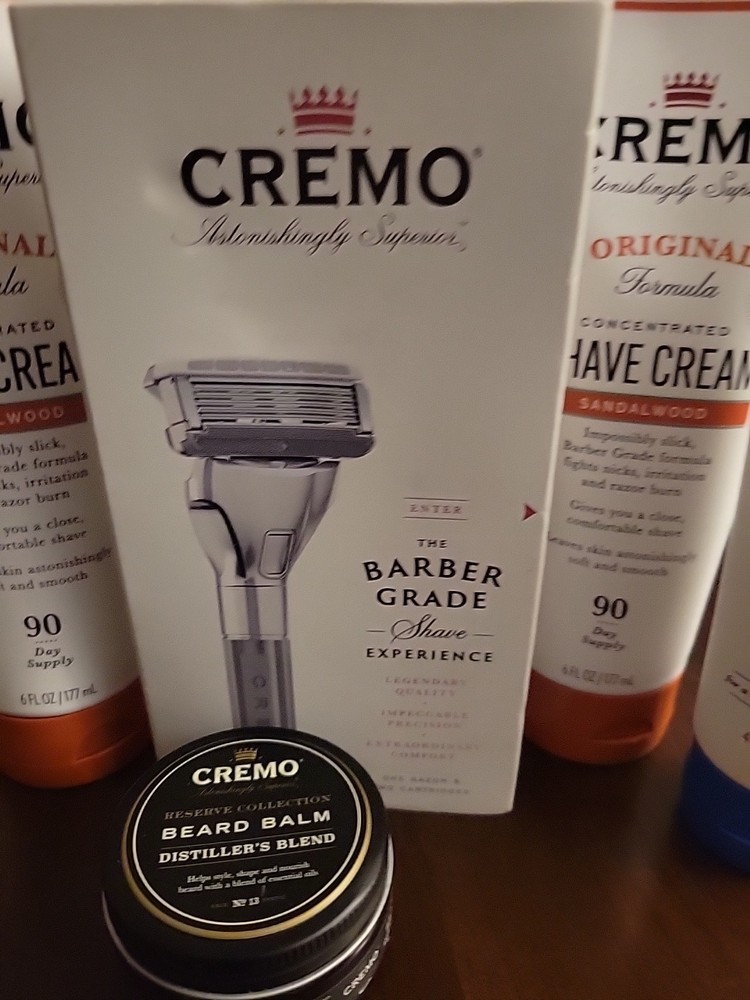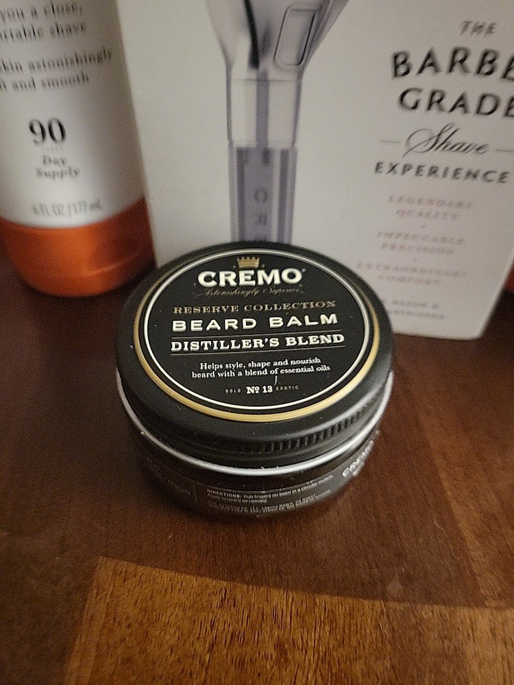 The Cremo Heritage Black Shave Kit includes a razor, refills, shave cream balm, beard thickening cream, and a jar of beard balm, providing everything a man needs for a smooth and comfortable shave. Their products are formulated for combination, normal, and dry skin types, with a luxurious cream formulation that leaves the skin feeling hydrated and nourished. The kit is animal cruelty-free and features a sandalwood scent for a relaxing shaving experience. Cremo's shave cream balm comes in a 6 oz capacity container ×2, making it a convenient and high-quality choice for daily facial grooming.