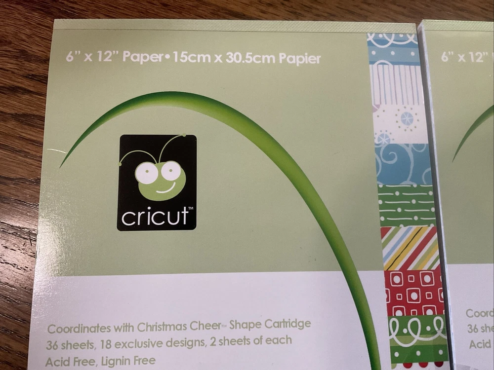 Cricut Provo Craft Christmas Cheer paper- 6” x 12” rob and bob studio. Coordinates with Christmas Cheer Cricut shape cartridge. 2 packages. Both are new/sealed. 36 sheets in each package.