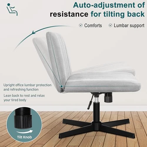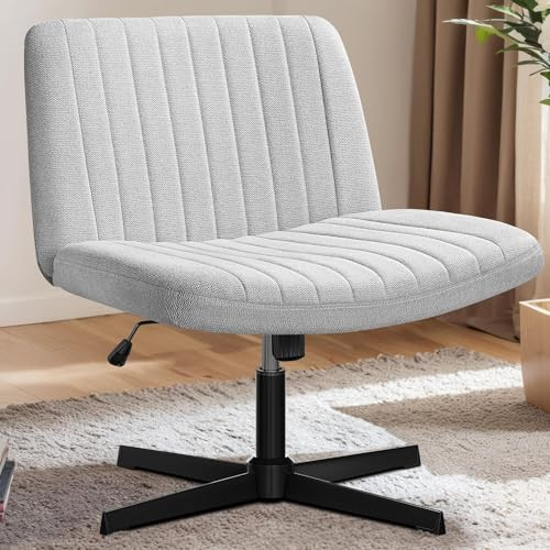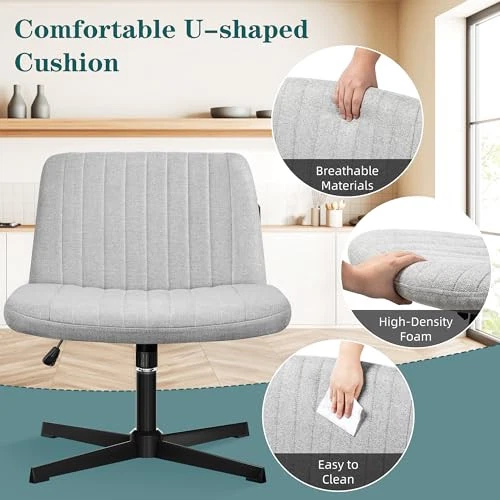 Return Policy Fast Delivery Trusted seller Criss Cross Chair, Armless Cross Legged Office Desk Chair with Fabric Padded Seat No Wheels, Swivel Height Adjustable Mid Back Wide Seat Computer Task Vanity Chair for Home Office, Grey Product Description 【Ergonomics】: This U-shaped design of this cross-legged office chair gradually releases pressure on the back and hips from the center to the sides, providing strong support for the back. The backrest and cushion are designed to follow the curve of the human spine, helping to relax the entire body. You can sit in a chair for a long time without feeling any fatigue. 【Comfort Adjustable】: Armless chair seat can be rotated 360°. By turning the knob under the seat cushion, the seat can swing back at an Angle of 21°. 【Larger Seat Width】: If you like to sit cross-legged in an office chair, if you are looking for a wide office chair, this 22-inch wide cross-legged office chair is just for you. The spacious seating and ergonomic construction will give you a comfortable and relaxing seating experience, specially designed for sedentary people. 【Easy Assembly】: This dresser chair comes with all the hardware and necessary tools, as well as detailed instructions. It's easy to assemble this chair yourself in your office or at home, taking just 20 minutes. 【Elegant Style】: The design is simple and elegant, and the armless chair allows it to push under the desk when not in use, making it easier to store and save space. The elegant appearance makes this chair suitable for all rooms. Shipping Returns Payment Shipping Shipping is FREE to all addresses other than APO/PO boxes in the lower 48 states. All our stock ships from US-based warehouses. Shipped via USPS or UPS (depending on location and package weight) Unless stated otherwise, all orders will ship within 24-72 hours of your payment being processed. Check our feedback to see the great reviews of FAST shipping we offer. Returns Seller does not accept returns Payment We currently accept payment via eBay managed payments only. Once payment is cleared, we will dispatch your shipment within 1-3 business days. Please refer to the "Shipping" tab for more information regarding shipping speed to your destination.