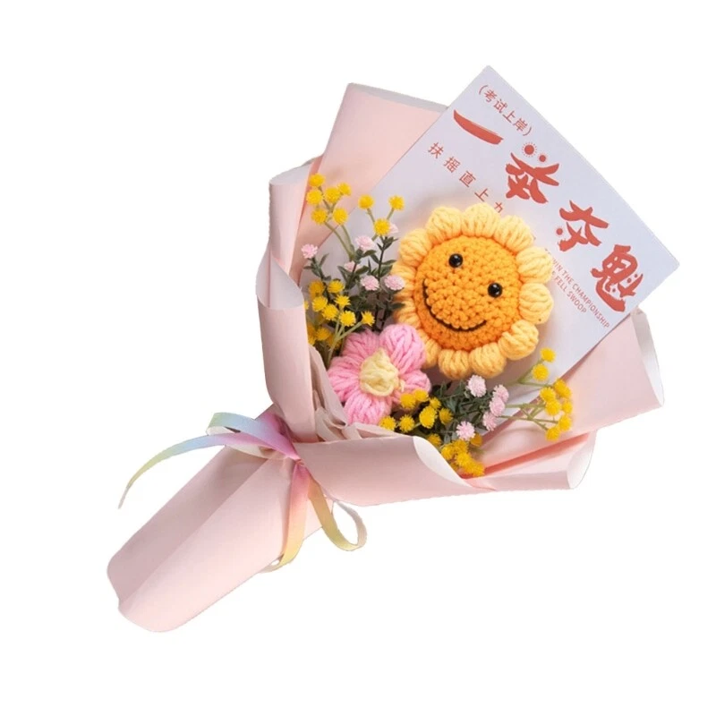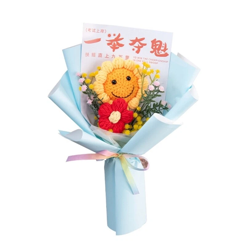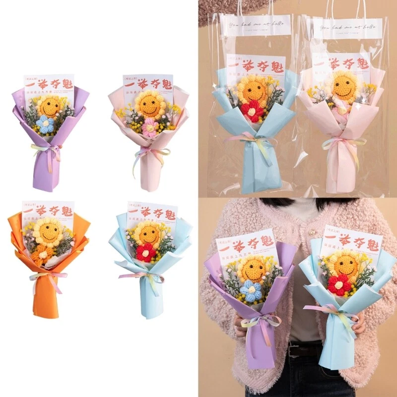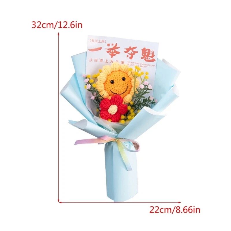 Features: Our handmade knitted flowers bouquets include crochet flowers, artificial leaf, small toy, LED string light and clear gift bag. These crochet flowers bouquets knitted by hands, suitable for decorating kitchen, bedroom, dining table, office, wedding parties, Craft with quality yarns. safe to people who suffering allergic to flowers.Suitable for graduation gift, birthday gift, Realistic flowers and leaf, would not fall and fade. Do not need water. Widely used for graduation ceremony, wedding, table decorations, home decorations. Gift for student, teacher, friend and child on graduation ceremony, birthdays, Mother Day, Valentines Day, Christmas and other festival. Specifications: Yarns Color: Blue; Purpler; Orange; Type: Set01; Set02; Set03; Set04; Set05 Bouquets Size: Approximately. 52x24cm/20.47x9.44in Weight: Approximately. 66g Package Includes: 1Piece Crochet Flowers Bouquets 1Piece LED String Light 1Piece Clear Gift Bag note: 1.Please allow 0-1cm error due to manual measurement. make sure you donot mind before bid. 2.Due to difference between different monitors, the picture may not reflect the actual color