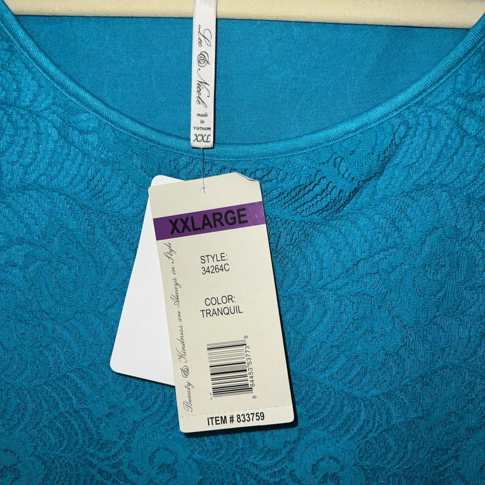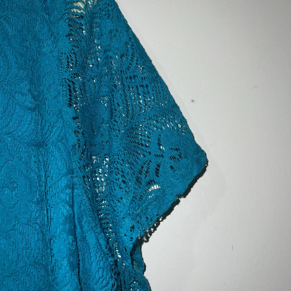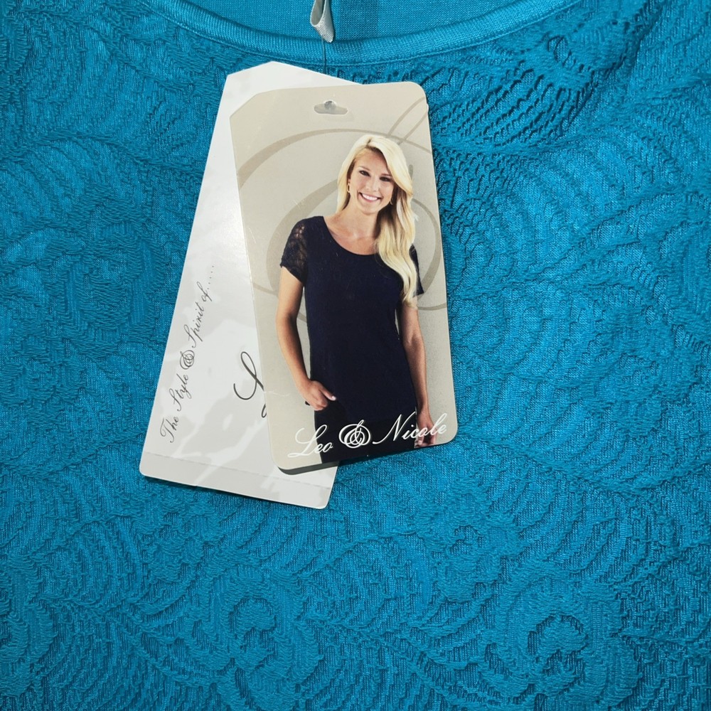 Crafted for versatility and elegance, the Leo & Nicole Lace Top is a charming addition to any wardrobe. The turquoise blue hue complements a range of outfits, making it a go-to for both casual and business settings. Its crochet knit design adds a touch of artisanal charm, while the lace accents provide a sophisticated finish. The top features a comfortable round neck and short sleeves that cater to a classic fit, ensuring ease of movement. It's made from a blend of cotton, nylon, and spandex, offering both softness and durability. Lined for a smooth silhouette, this top is a practical choice for travel or everyday wear.