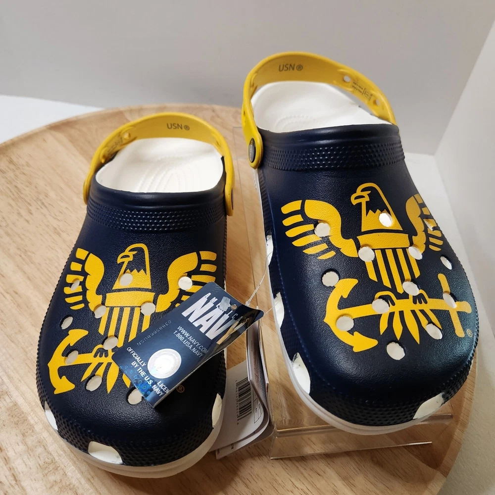 America's Navy Crocs women's size 11 men's size 9 with tags no box Please go by the photos and typed description (not auto fill) for item details. Any questions, just ask!