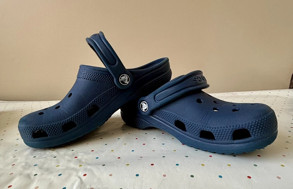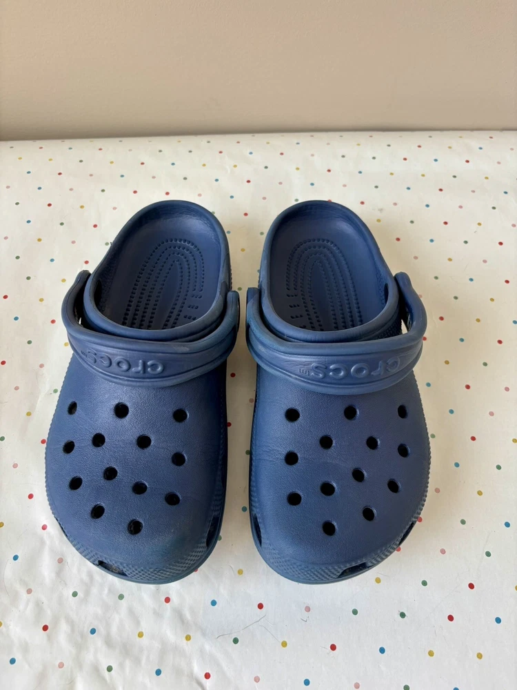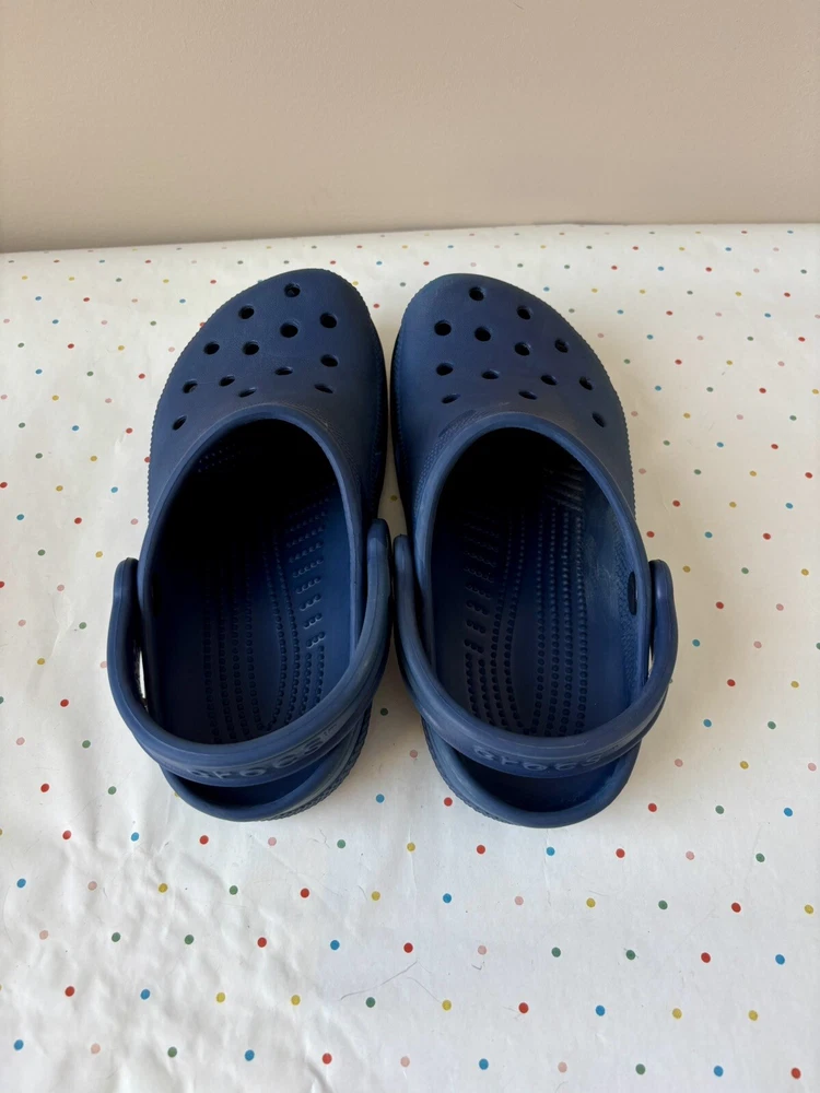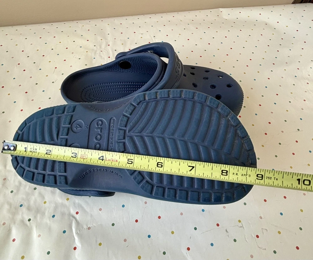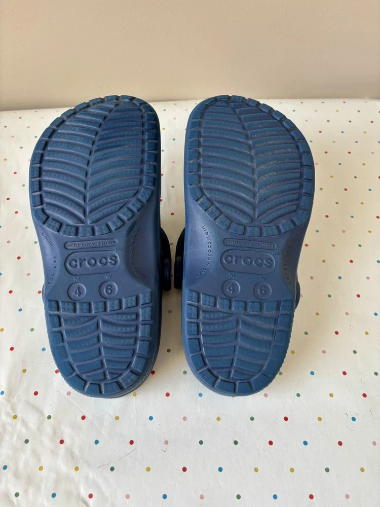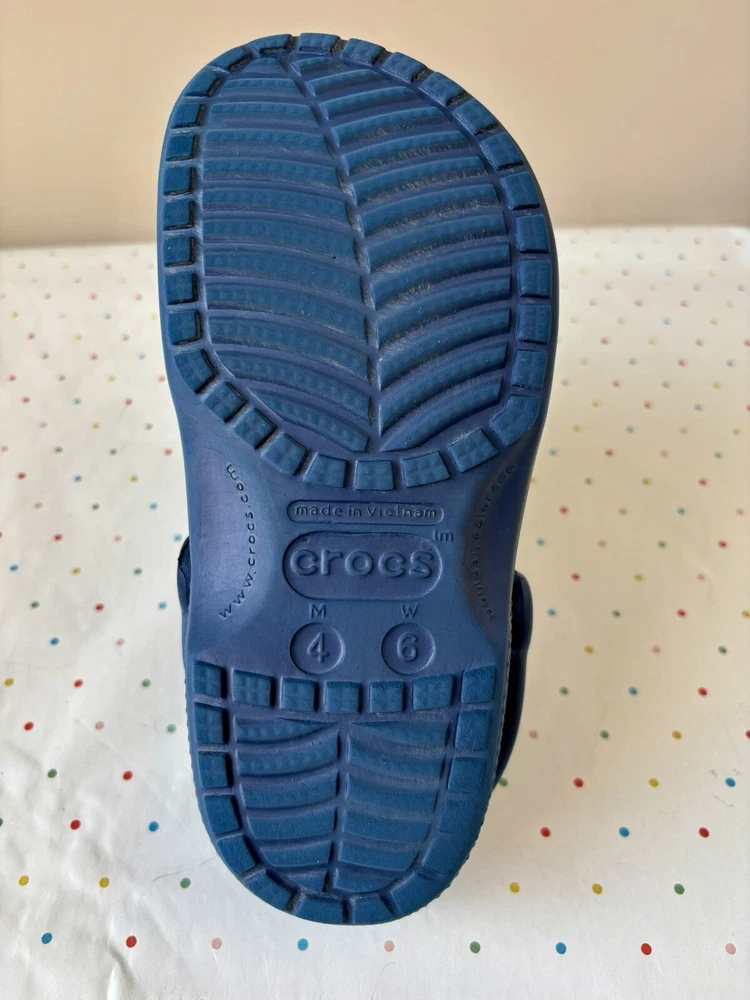 The Crocs Bistro Navy Blue Shoes Sandals are unisex clogs in size M4 W6, suitable for casual wear. They feature a slip-on style with a round toe shape and Crocs logo accents. Made from Croslite material, these comfortable clogs are ideal for summer, fall, and spring seasons. The classic design and solid blue color make them a versatile choice for teens looking for a stylish and easy-to-wear shoe option.