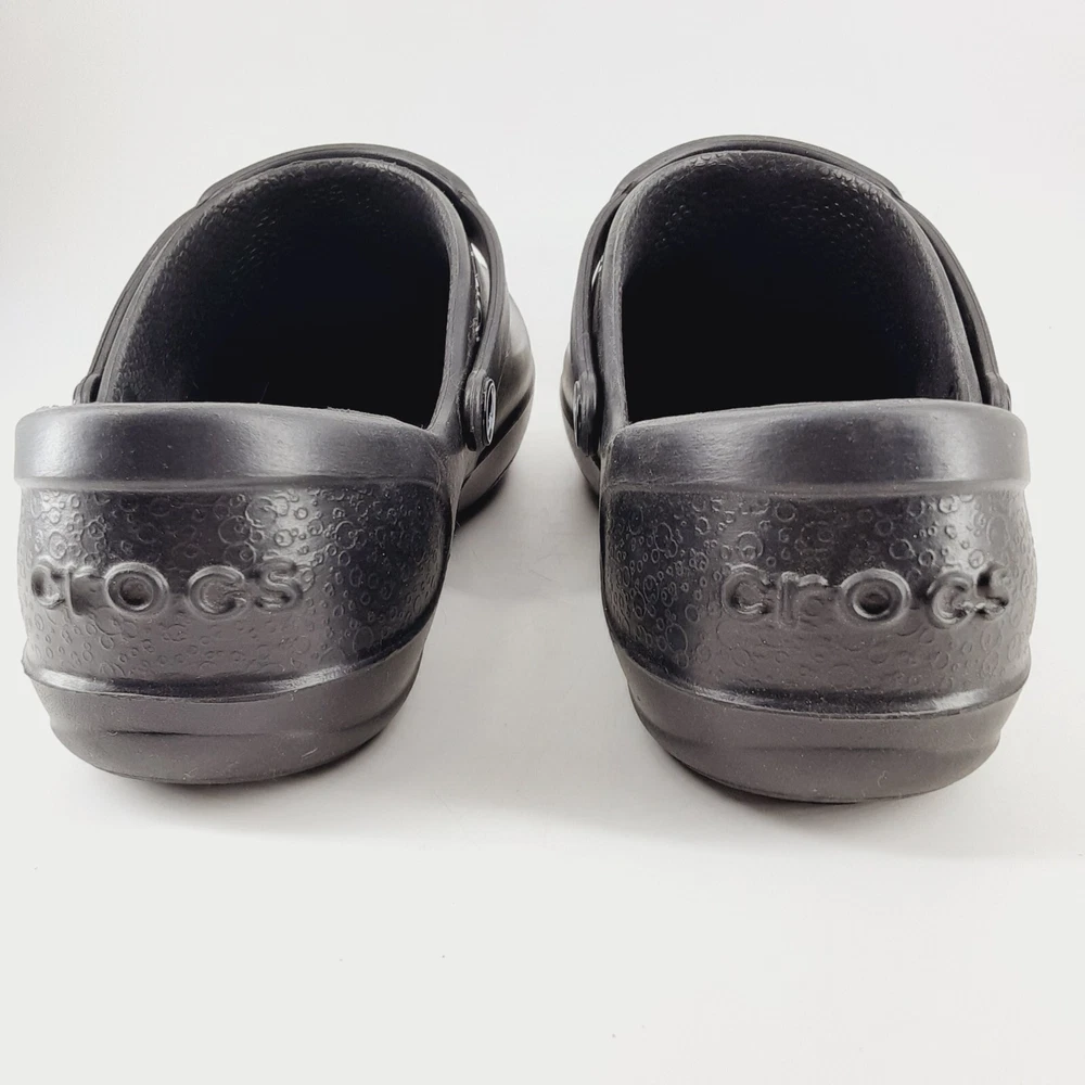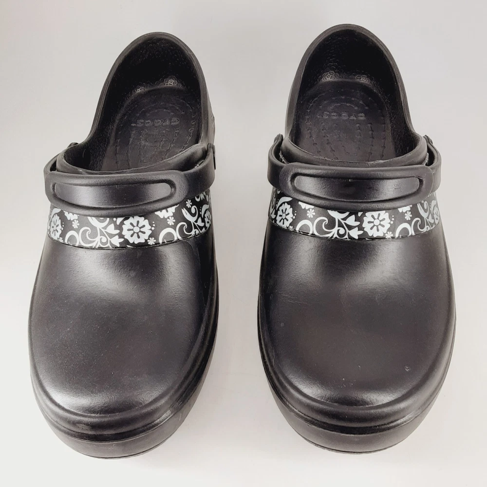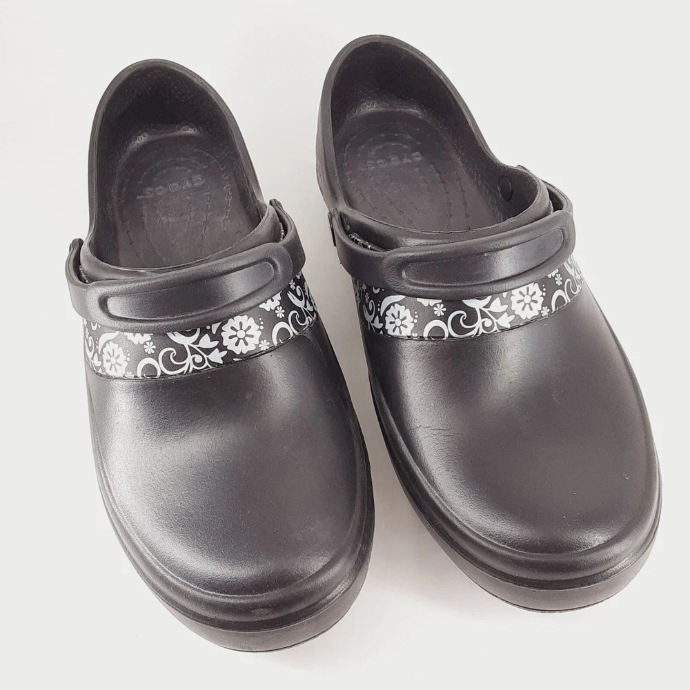WE APPRECIATE OUR CUSTOMERS THANK YOU FOR SHOPPING WITH US!! Crocs Black Clog Style Shoe Size Womans 10 Slip Resistant Silver Floral Band Elevate your casual style with these black Crocs clogs, featuring a stunning silver floral band. Slip into the comfort of these synthetic shoes, perfect for any occasion. With a slip-on closure, these clogs are easy to wear and feature a slip-resistant sole for added safety. These Crocs are designed for women with a US shoe size of 10 and are ideal for those looking for a stylish yet comfortable shoe. Perfect for any outfit, these clogs are sure to become a go-to in your shoe collection. Add some metal-themed flair to your look and step out in style with these Crocs. *Please look at pictures as they are part of the description/details. *Good Preowned Condition *Thanks for looking! Please remember items listed as vintage or used will typically show age appropriate wear. I have provided lots of photos for you to see the general condition of each item. If you would like any further photos or information, please contact me and I will be happy to try and help. I do my best to describe items accurately. Pictures are considered part of the description. Cameras and/or computers can sometimes slightly alter colors. Any measurements should be considered approximate. If you need an exact measurement, please ask. Terms and Conditions : Once a purchase has been made, it is legally binding contract. Payments: Payment is due when purchase is made, Thank you for your prompt payment. *If payment is not received within 4 days of purchase, then a Non-Paying Buyer Dispute will be filed, and eBay may mark it against your account. SHIPPING: We ship daily (Mon-Fri not to include holidays) and will ship within two business day of receiving payment! I do accept returns if you are unhappy with your item for any reason. I ask that it be returned in the original condition you received it in. I take pride in shipping items carefully. However, if an item arrives damaged, please contact me immediately. All shipping materials (box, poly bag, bubble wrap, paper, etc.) must be kept, as well as it is necessary to take 7 pictures to document exterior damage of the box, as well as the interior damage of the item(s) that was purchased. This documentation is required to file a damage claim with both USPS and UPS. Upon Receiving : If you are satisfied with your product(s), please leave some positive feedback. *We love hearing that you have received your purchase(s), and are content, delighted, and untroubled. *Once you receive your purchase(s), please inspect them for any damage during transit. Report any damage within 24hrs via eBay e-mail. Return Policy : You may return unworn, unwashed merchandise in its original condition with all tags attached. If you bought a brand-new item, it MUST be returned brand new (Sealed and Any returns MUST be sent back to us complete and in the same condition as delivered to you Unopened). Items must be in new or original condition (free of odor, markings etc.) and ready for resale. Any serial or product numbers must match the purchased item for refund. PLEASE NOTE that shipping will not be refunded . Upon time of purchase, you are agreeing to this return policy. CHECKOUT: Please make sure that your address on file with eBay is complete and correct as we must use the address you have with eBay. *If you have any questions about your purchase, delivery, or a possible product return; Please contact us immediately and directly through your eBay accounts message center! *We are Eco-Friendly, leaving the lightest possible impact on our environment! Whenever possible we will reuse packing material to aid with our Eco goals. Customer service and feedback: If you have any questions about your purchase, delivery, or a possible product return; Please contact us immediately and directly through your eBay account message center! Your satisfaction is our top priority! Our goal is to earn your 5-star 100% feedback. Thank You for buying from us! *Please look at pictures as they are part of the description/details. *Good Preowned Condition *Thanks for looking! Please remember items listed as vintage or used will typically show age appropriate wear. I have provided lots of photos for you to see the general condition of each item. If you would like any further photos or information, please contact me and I will be happy to try and help. I do my best to describe items accurately. Pictures are considered part of the description. Cameras and/or computers can sometimes slightly alter colors. Any measurements should be considered approximate. If you need an exact measurement, please ask. Terms and Conditions : Once a purchase has been made, it is legally binding contract. Payments: Payment is due when purchase is made, Thank you for your prompt payment. *If payment is not received within 4 days of purchase, then a Non-Paying Buyer Dispute will be filed, and eBay may mark it against your account. SHIPPING: We ship daily (Mon-Fri not to include holidays) and will ship within two business day of receiving payment! I do accept returns if you are unhappy with your item for any reason. I ask that it be returned in the original condition you received it in. I take pride in shipping items carefully. However, if an item arrives damaged, please contact me immediately. All shipping materials (box, poly bag, bubble wrap, paper, etc.) must be kept, as well as it is necessary to take 7 pictures to document exterior damage of the box, as well as the interior damage of the item(s) that was purchased. This documentation is required to file a damage claim with both USPS and UPS. Upon Receiving : If you are satisfied with your product(s), please leave some positive feedback. *We love hearing that you have received your purchase(s), and are content, delighted, and untroubled. *Once you receive your purchase(s), please inspect them for any damage during transit. Report any damage within 24hrs via eBay e