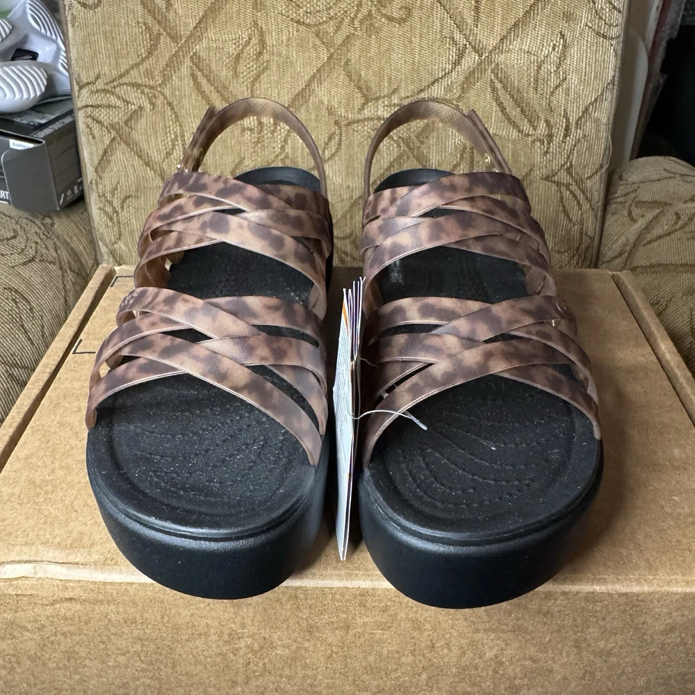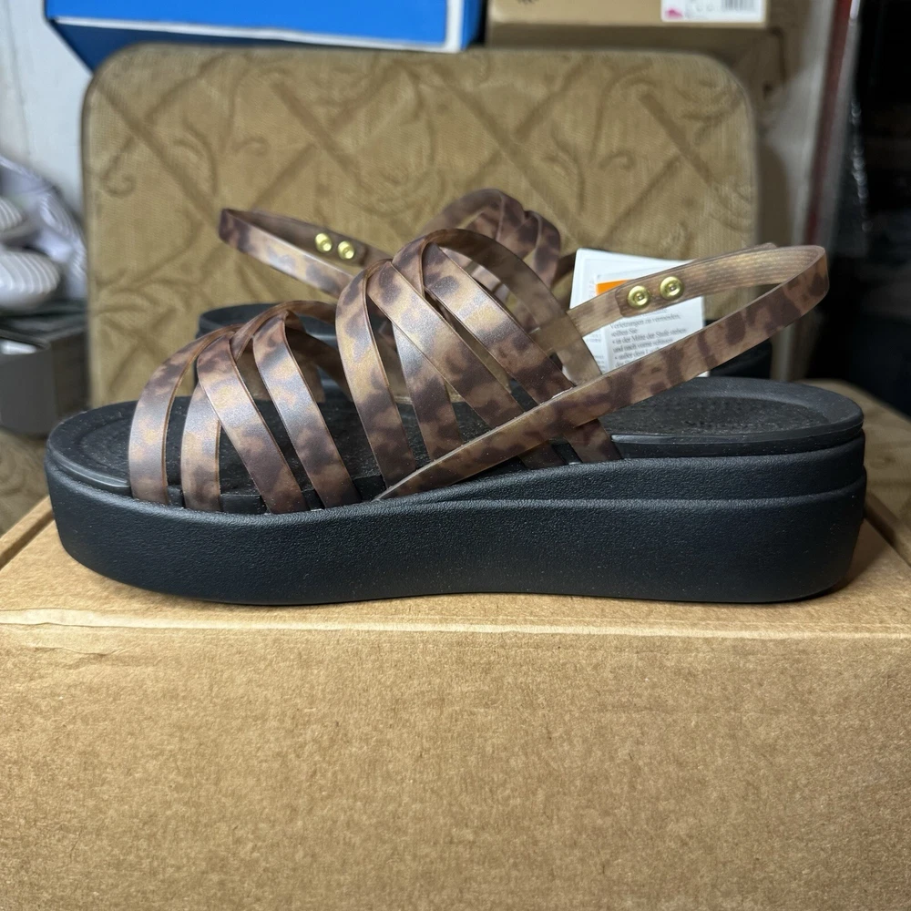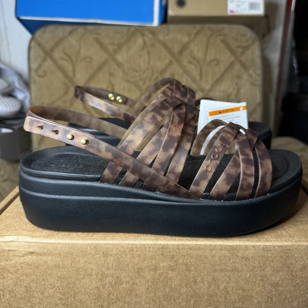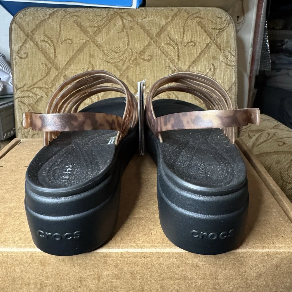 Crocs Brooklyn Literide Tortoise Strappy Low Wedge Sandal Size 9 Mocha/Black NEW