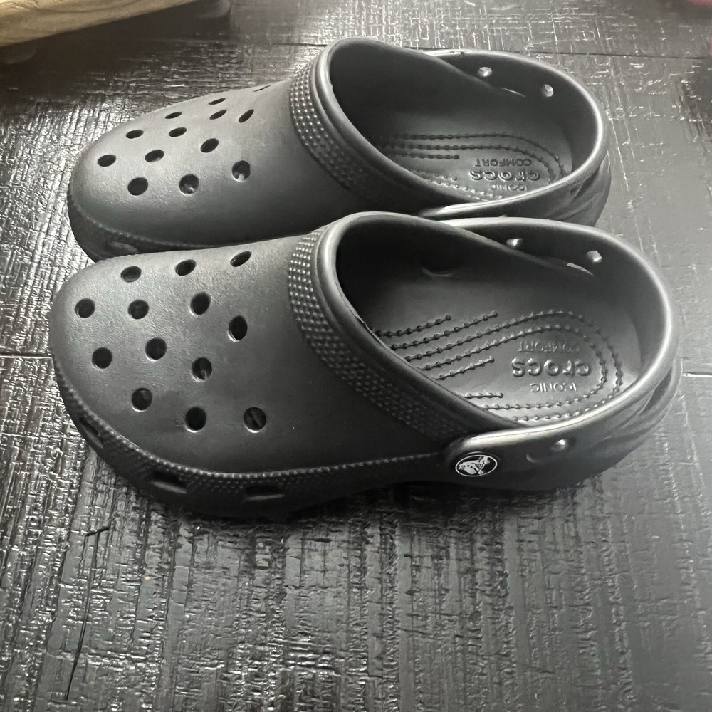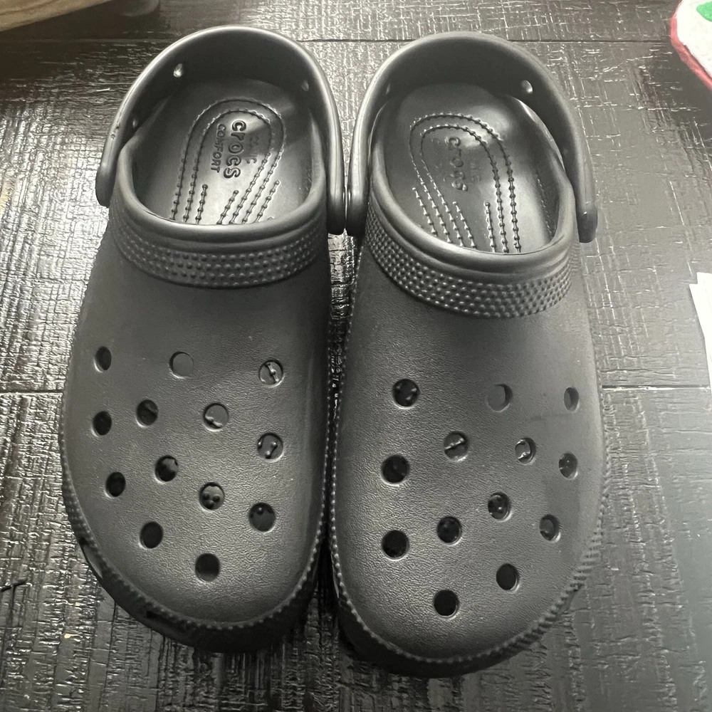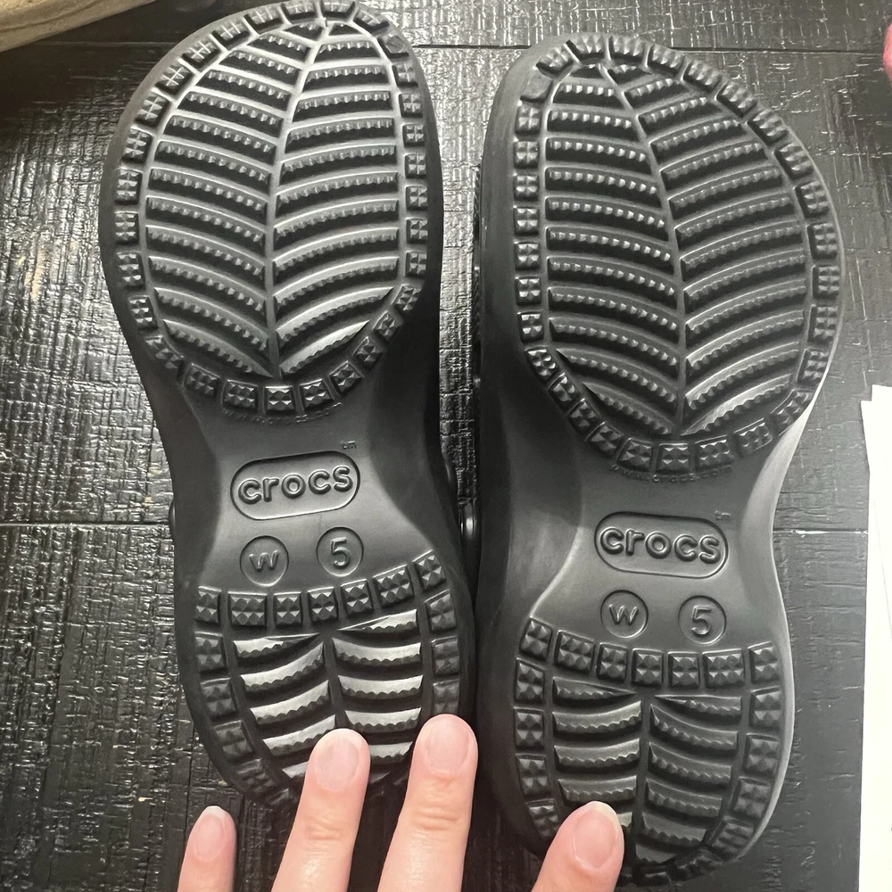 Crocs Classic Bae Women's Black Slip On Clogs in size 5 feature a chunky platform design for added height. These casual clogs are made of breathable rubber material, ensuring comfort for all-day wear. With a slip-on style and classic black color, these Crocs are perfect for women looking for both style and functionality in their footwear.