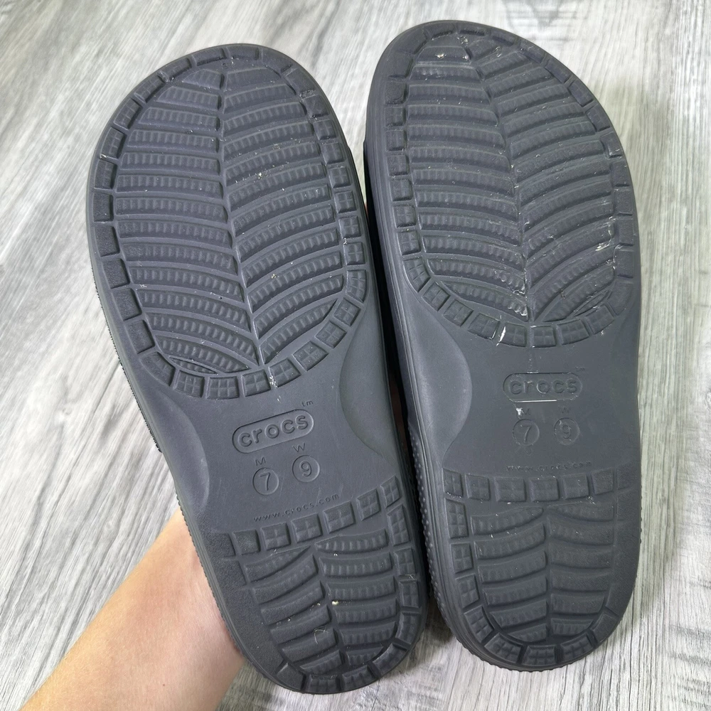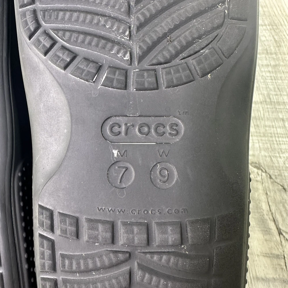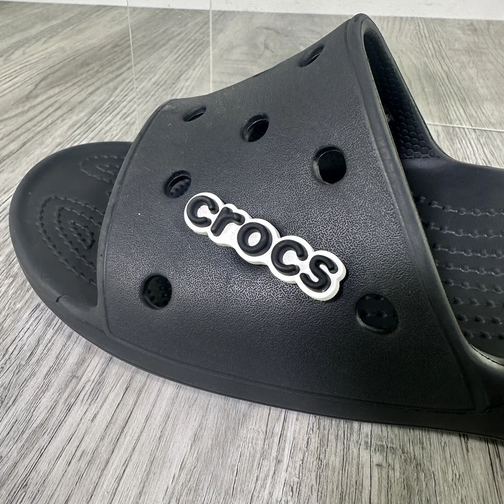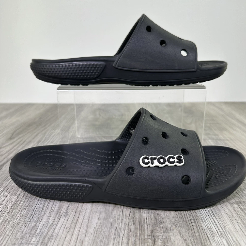 Crocs Classic Black Slides Mens 7 Womens 9 Slip On Sandals Shoes Beach Water. In used condition please see pictures for details. Little wear very nice condition.