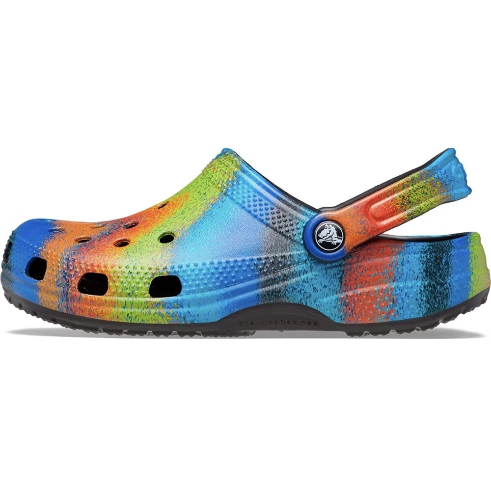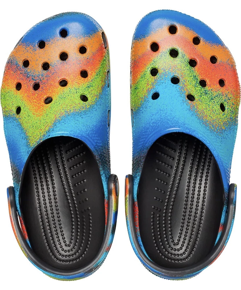 Crocs Classic Clog Slip Ons Spray Dye Multi Black Women’s Size 6 — Men’s Size 4