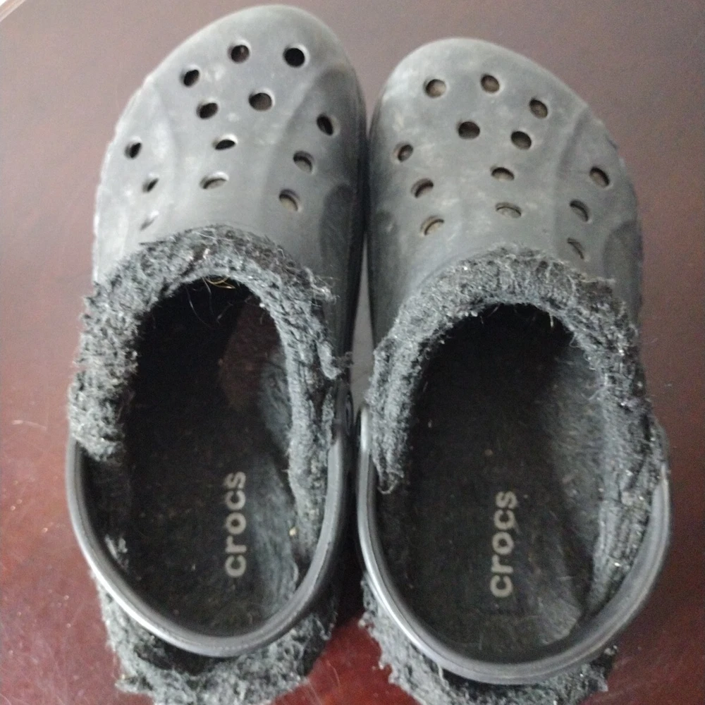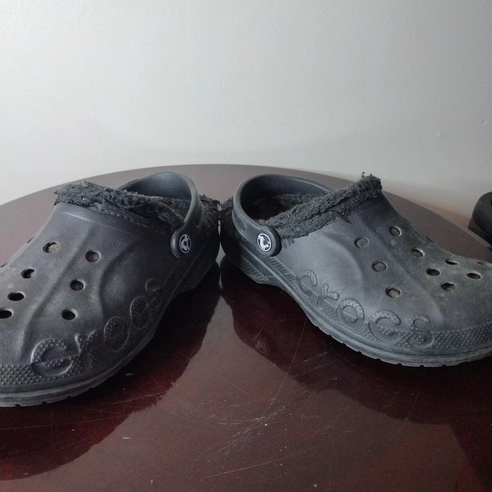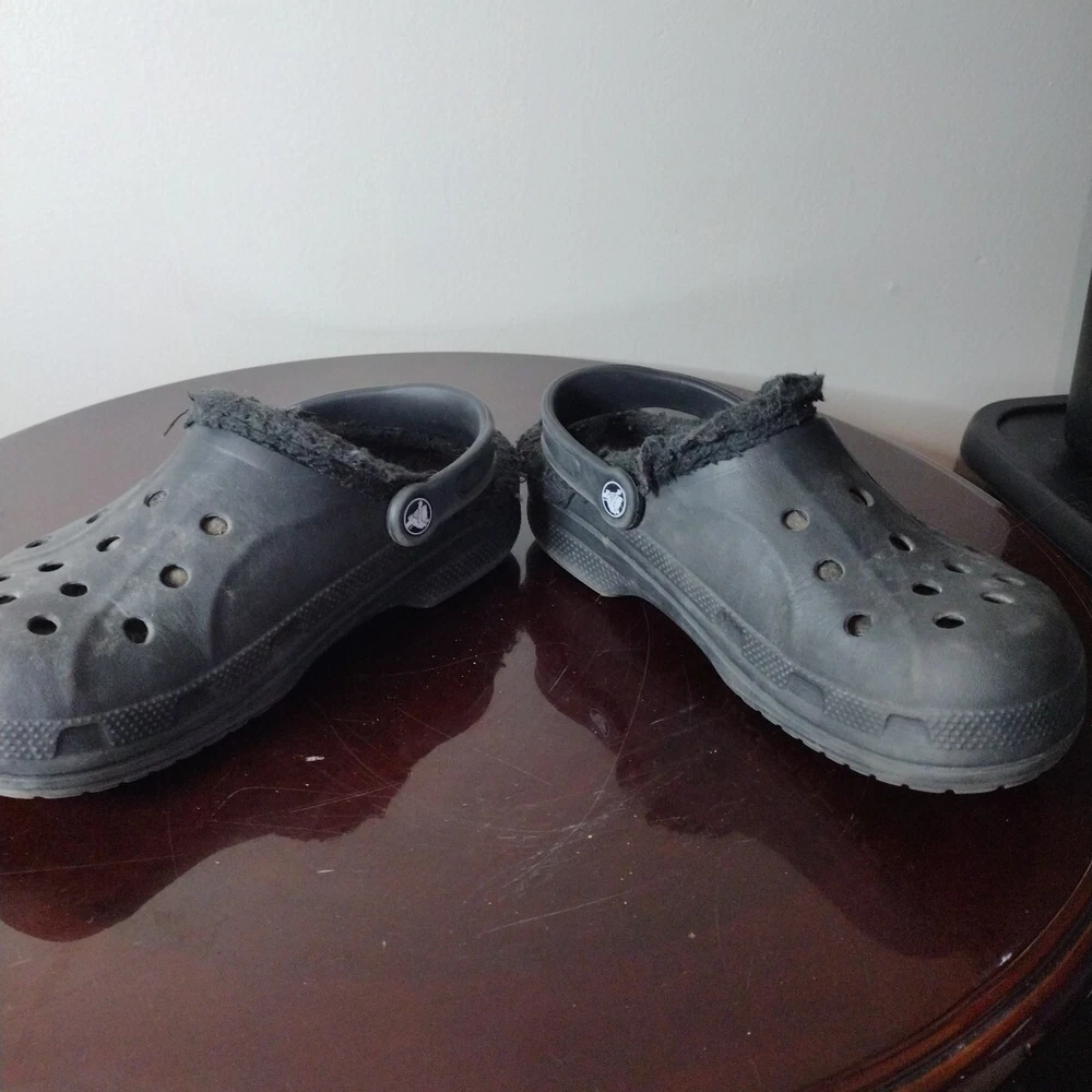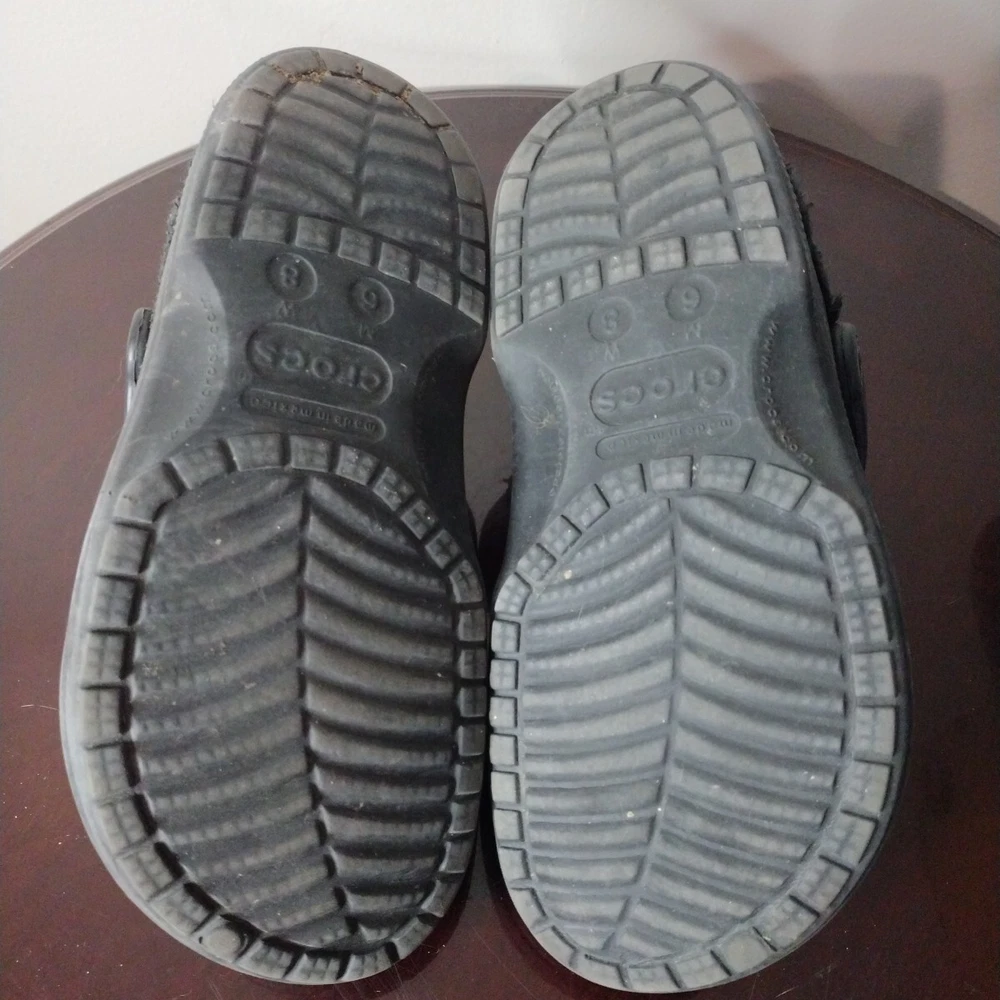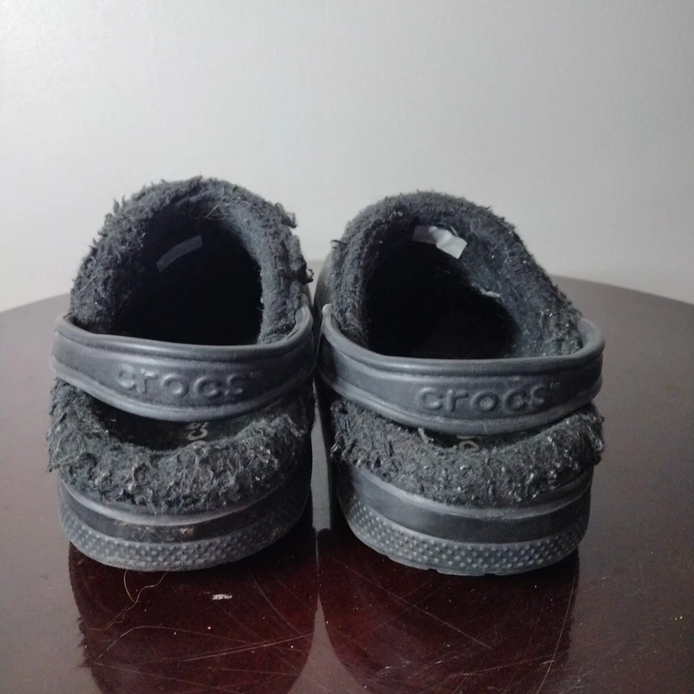 Crocs Classic Clogs Unisex W 8 M 6 Shoes Black Faux Fur Lined Casual Comfort