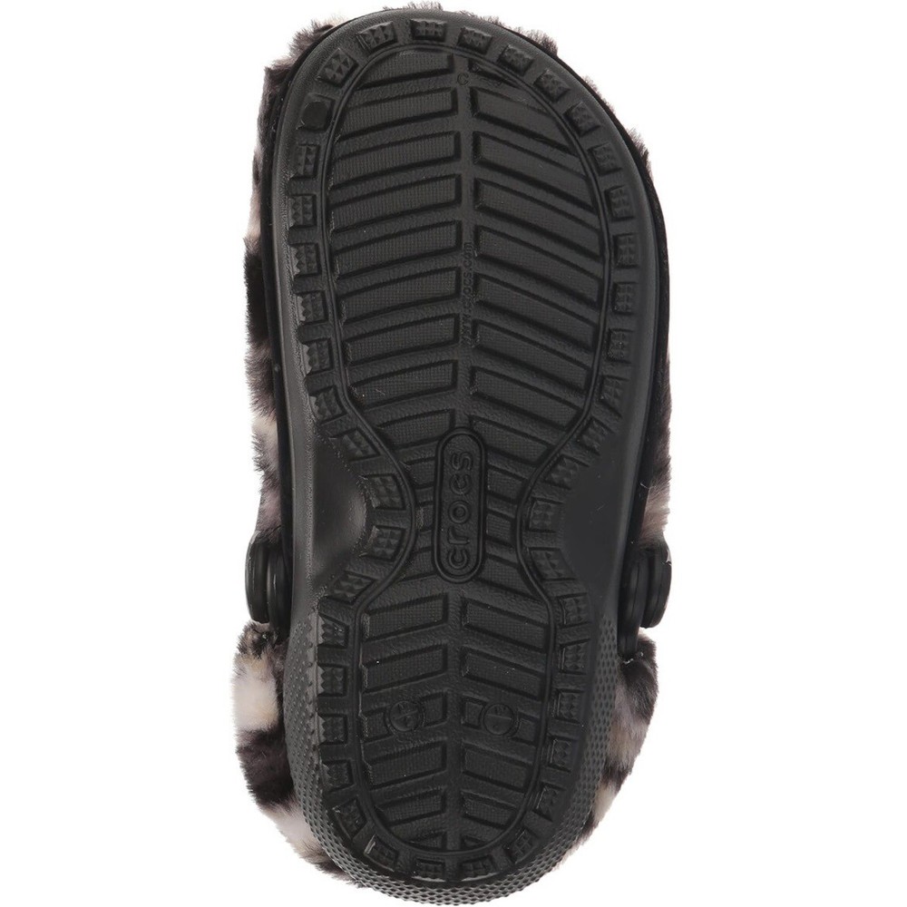 Crocs Classic Fur Sure Lined Clog Black Bleach Dye Women’s Size 7 - Men’s 5 NEW