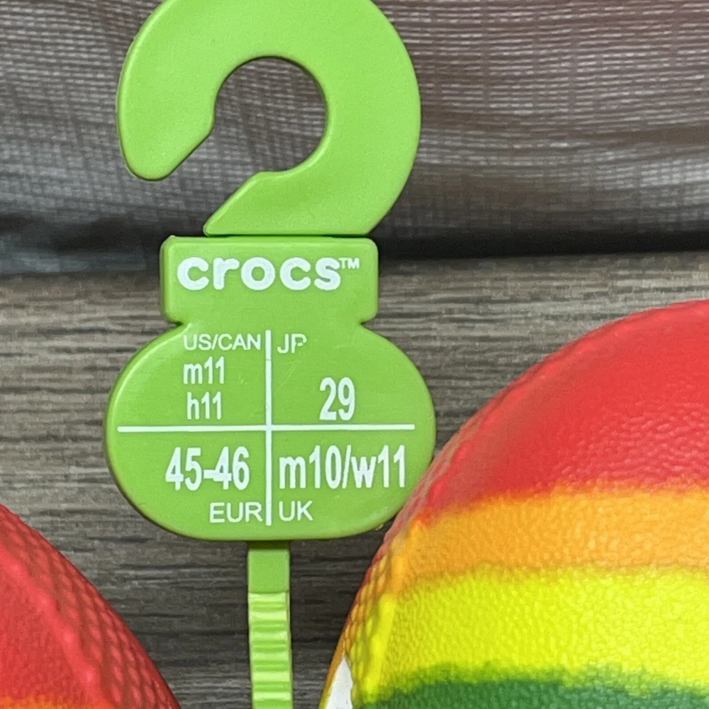Unleash your vibrant side with the Crocs Classic Rainbow Dye Multicolor Clog, a playful addition to any casual ensemble. These clogs are designed with a tie-dye pattern that boasts an array of hues, making them a stand-out piece. Crafted for comfort and ease, they feature a slip-on design that ensures a secure and comfortable fit for everyday wear. Built to suit a variety of seasons, these synthetic upper clogs provide breathability and are equipped with a cushioned insole to support your arch. They're also lightweight and water-resistant, making them a practical choice for any setting. Whether you're out for a casual stroll or enjoying a day at the beach, these limited-edition Crocs offer both style and function in one vibrant package.