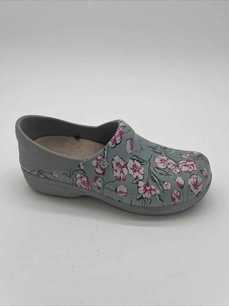 Elevate your casual look with these Crocs Clogs in Vera Bradley's Pink Floral pattern. The slip-on style and round toe shape make them comfortable for all-day wear. These clogs are perfect for women who appreciate comfort and style. The light green and pink floral colors are perfect for any season. The Crocs brand is known for its quality and durability, making these shoes a great investment for your wardrobe. These clogs are available in women's size 9 W and are sure to be a stylish addition to your collection.