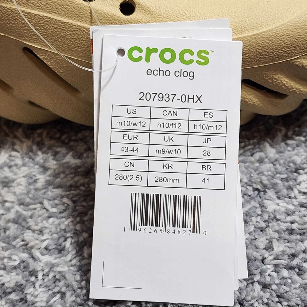 Crocs Echo Clogs - Unisex - Size Men's 10 Women's 12 - Sesame - 207937-0HX - New in Bag FAST FREE SHIPPING!