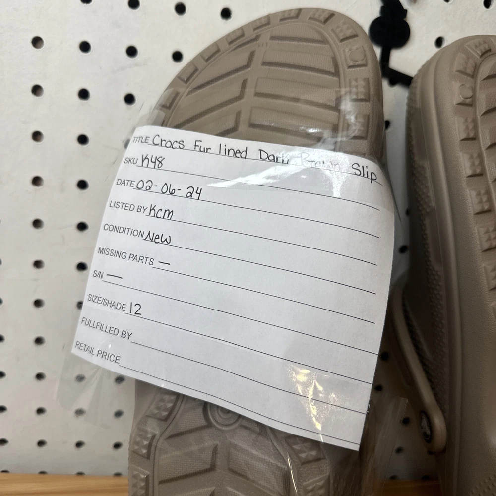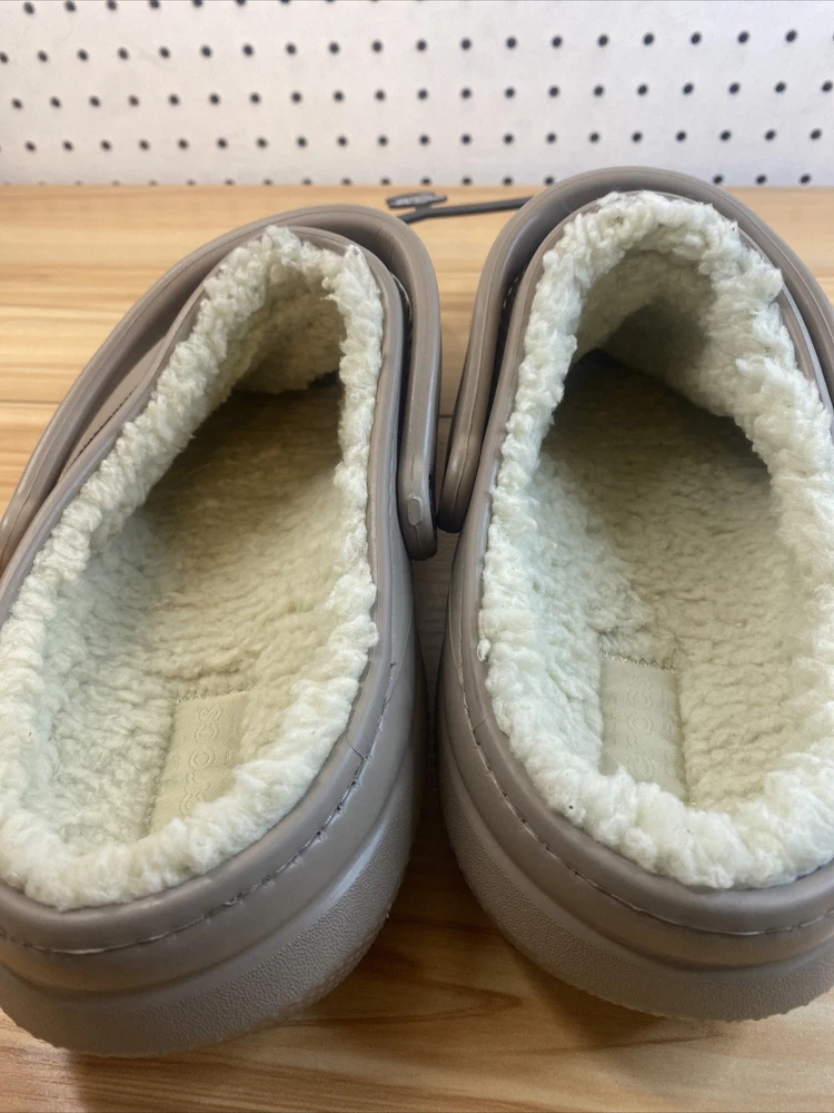 Introducing a stylish and comfortable slip-on clog shoe from Crocs. With a round toe shape and standard shoe width, this shoe is perfect for women who want to stay comfortable during casual and activewear occasions. The outsole is made of Croslite material, while the upper faux fur material lining is perfect for those cooler fall, summer, and spring days. Featuring a non-slip, lined, and comfortable interior, this shoe is perfect for those who want to stay cozy and stylish. Additionally, it comes with a strap and logo accents, making it perfect for beach and lounging around home themes. Get your hands on this Crocs Crocband model today, perfect for all your casual needs. item looks to be in good condition, item inspected to the best of our abilities item is new without tags size men 11 women's 12