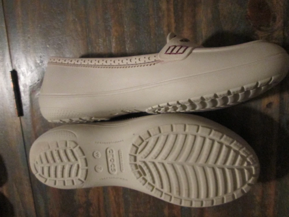 Crocs Lano Penny Loafers Slip On Comfort Shoes Women's Sz 7 Beige Mauve Accents