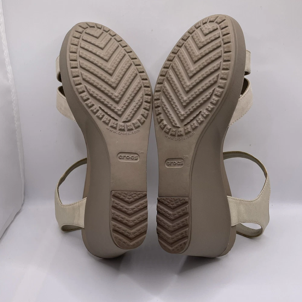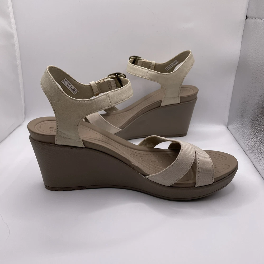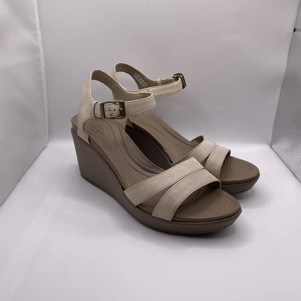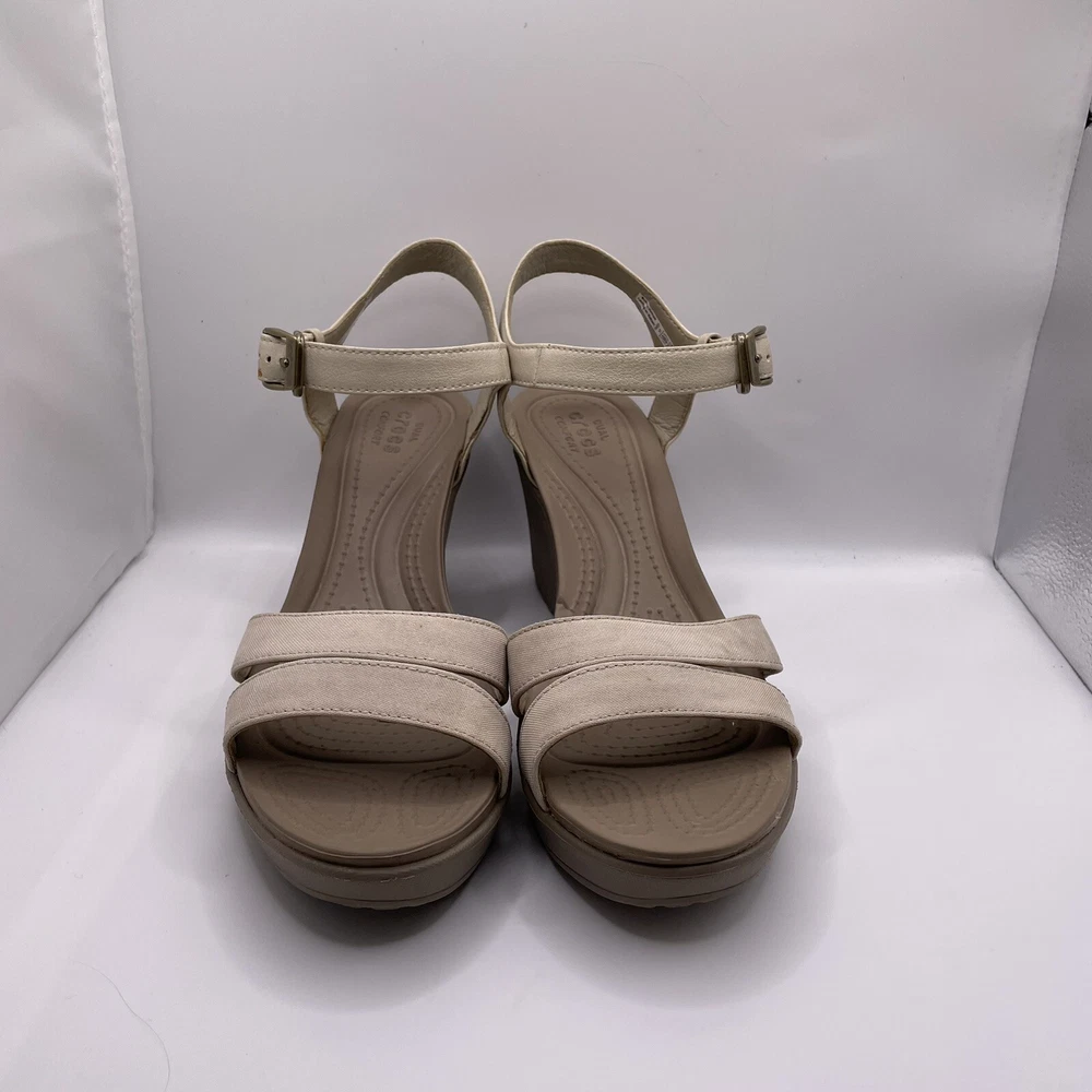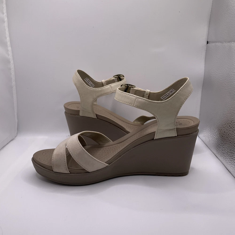 Crocs Leigh II Women's Sz 9 Shoes Beige Strappy Comfort Wedge Platform Sandals
