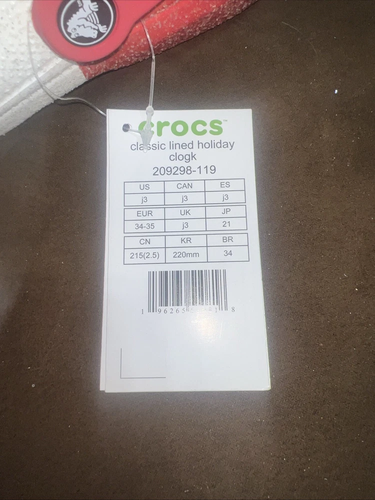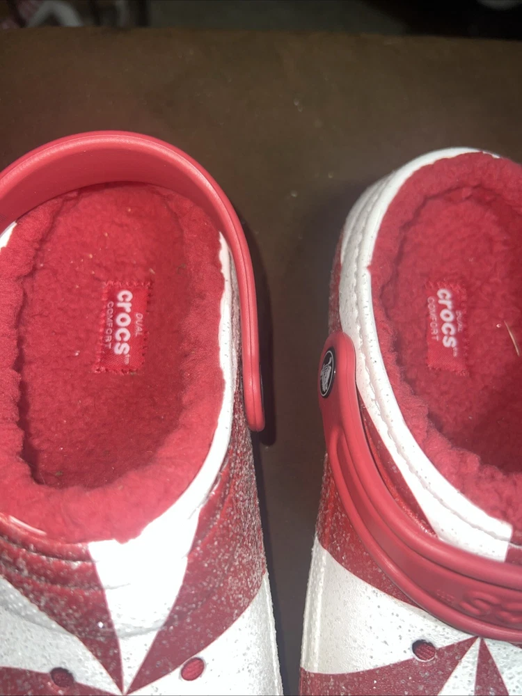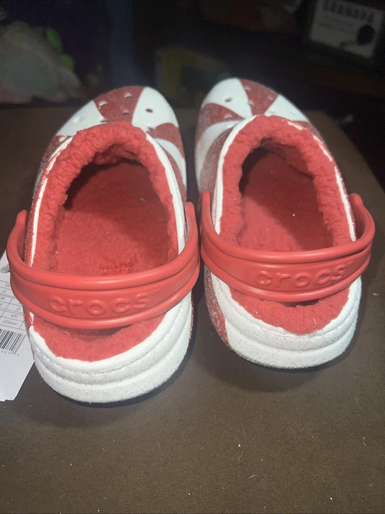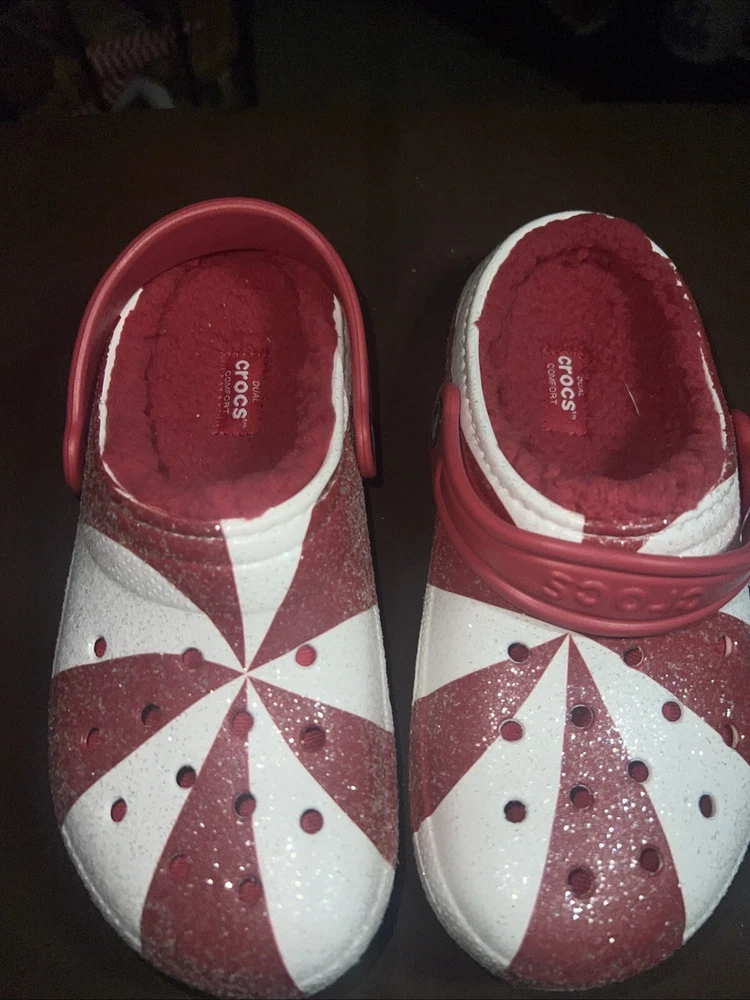 Crocs Lined Holiday Clog Peppermint Candy Glitter Christmas sz J3 or women’s 4