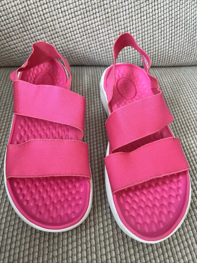 These Crocs LiteRide Stretch sandals are the perfect addition to your summer footwear collection. With a slip-on closure and flat heel style, they provide both comfort and convenience. The solid pink color and Crocs logo accents make them a stylish choice for any casual occasion. These sandals are designed with a comfort strap and stretch features, making them perfect for women's size 8. Whether you're running errands or going to the beach, these Crocs LiteRide Stretch sandals are a must-have. Add them to your cart now and experience the ultimate comfort and style.
