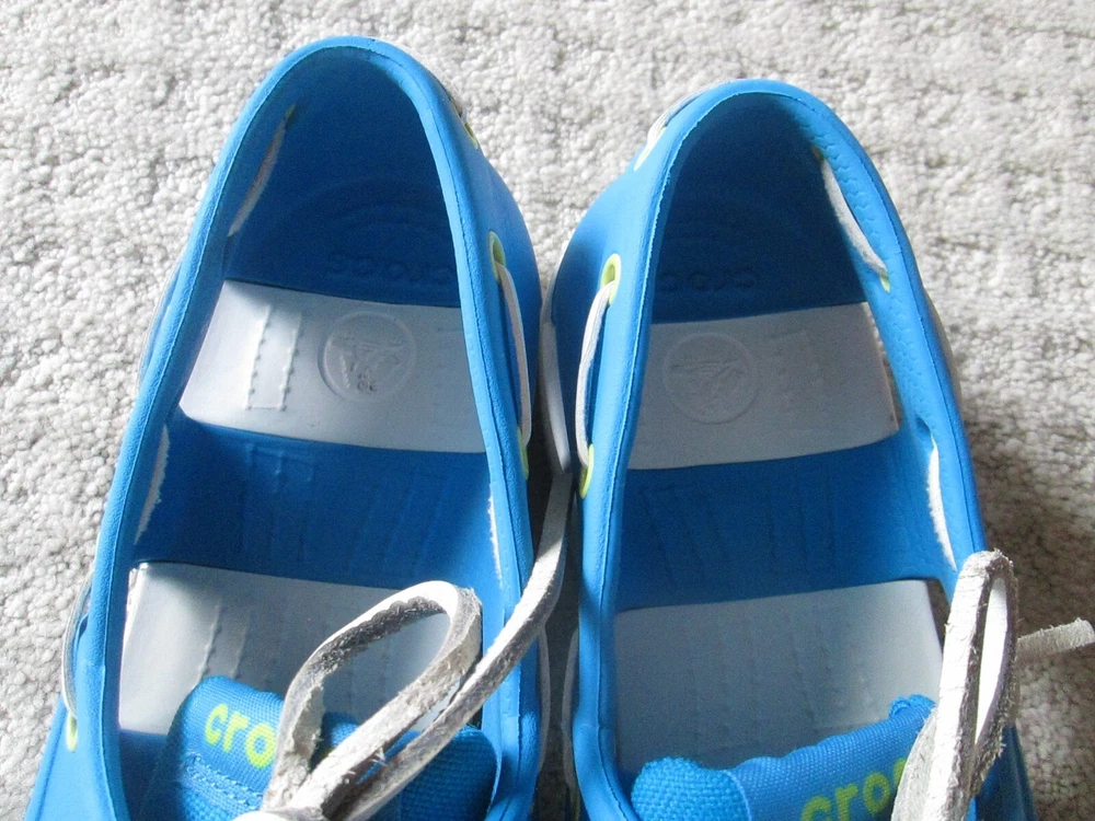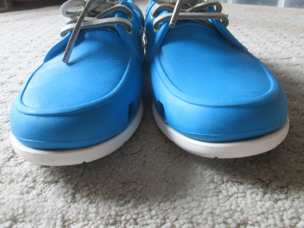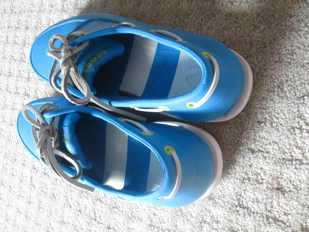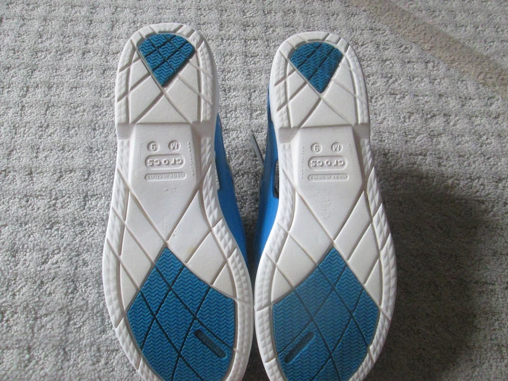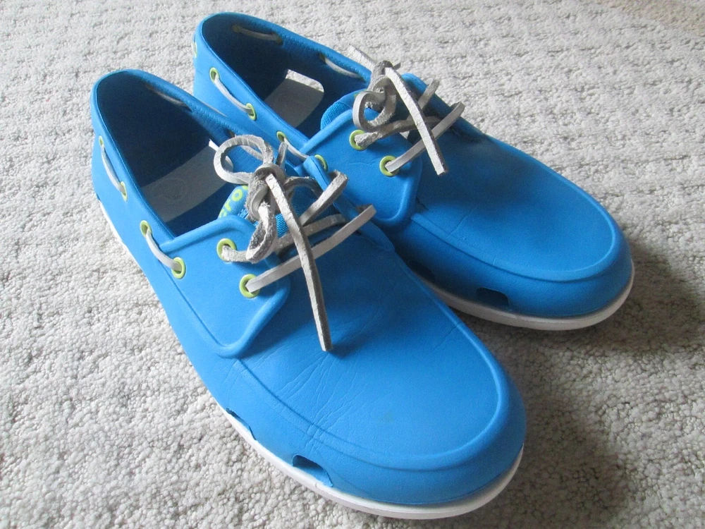 Accents:LogoPattern:SolidColor:BlueCountry/Region of Manufacture:VietnamSeason:Fall, Spring, Summer, WinterFeatures:Breathable, ComfortUS Shoe Size:9Outsole Material:RubberOccasion:CasualStyle:Boat ShoeType:CasualUpper Material:RubberDepartment:MenClosure:Lace UpToe Shape:Round ToeBrand:CrocsTheme:Going OutModel:ClassicSeller Notes:“VERY nice barely worn and come as pictured Only MINOR wear/ soiling”