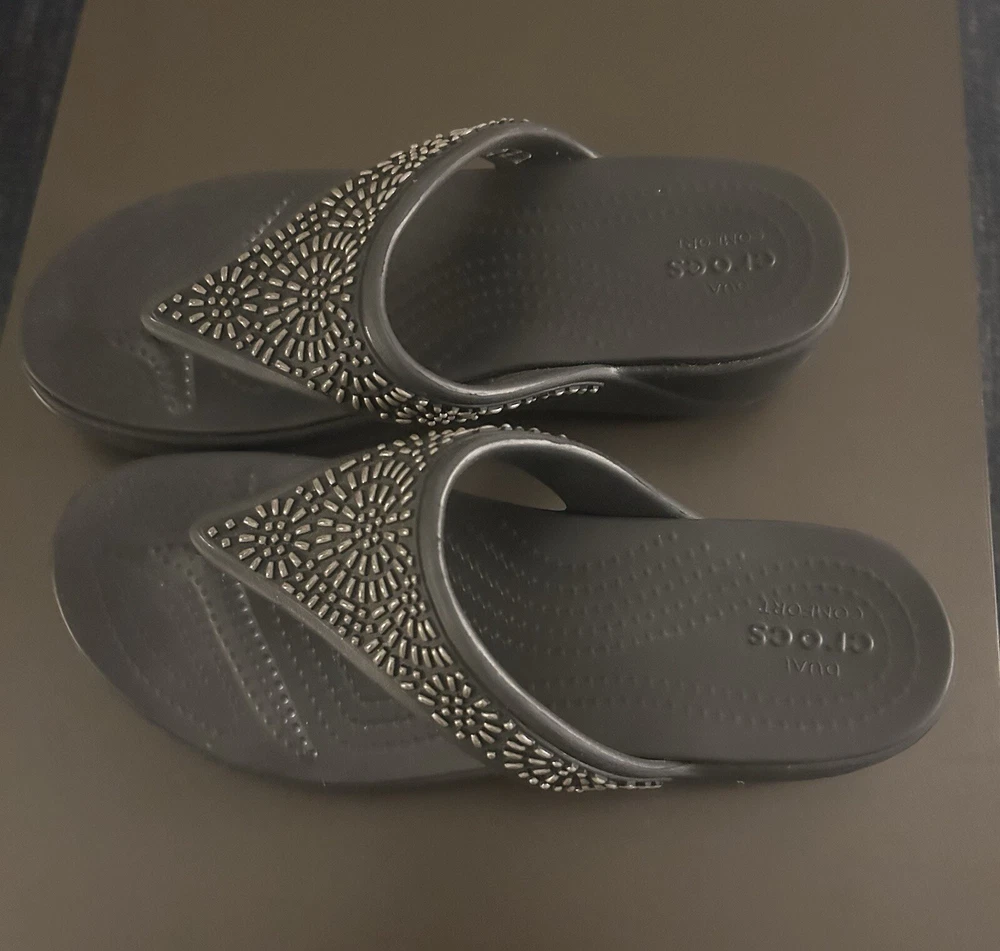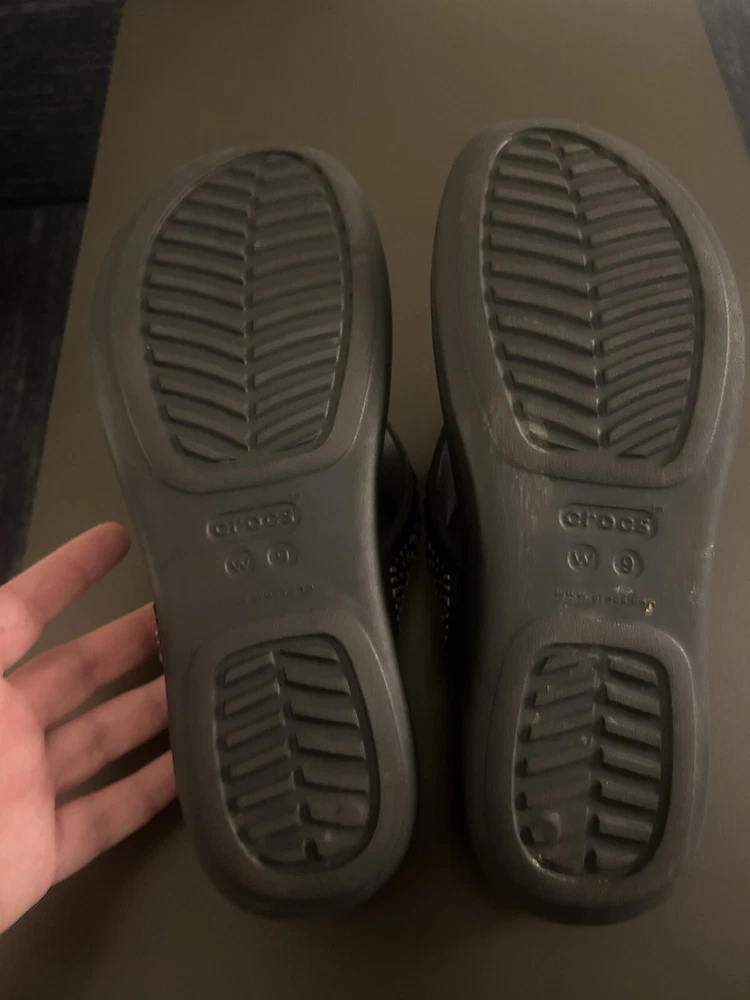 Crocs Monterey Diamante Womens Size 9 Black Thong Flip Flop Wedge Sandals 206343