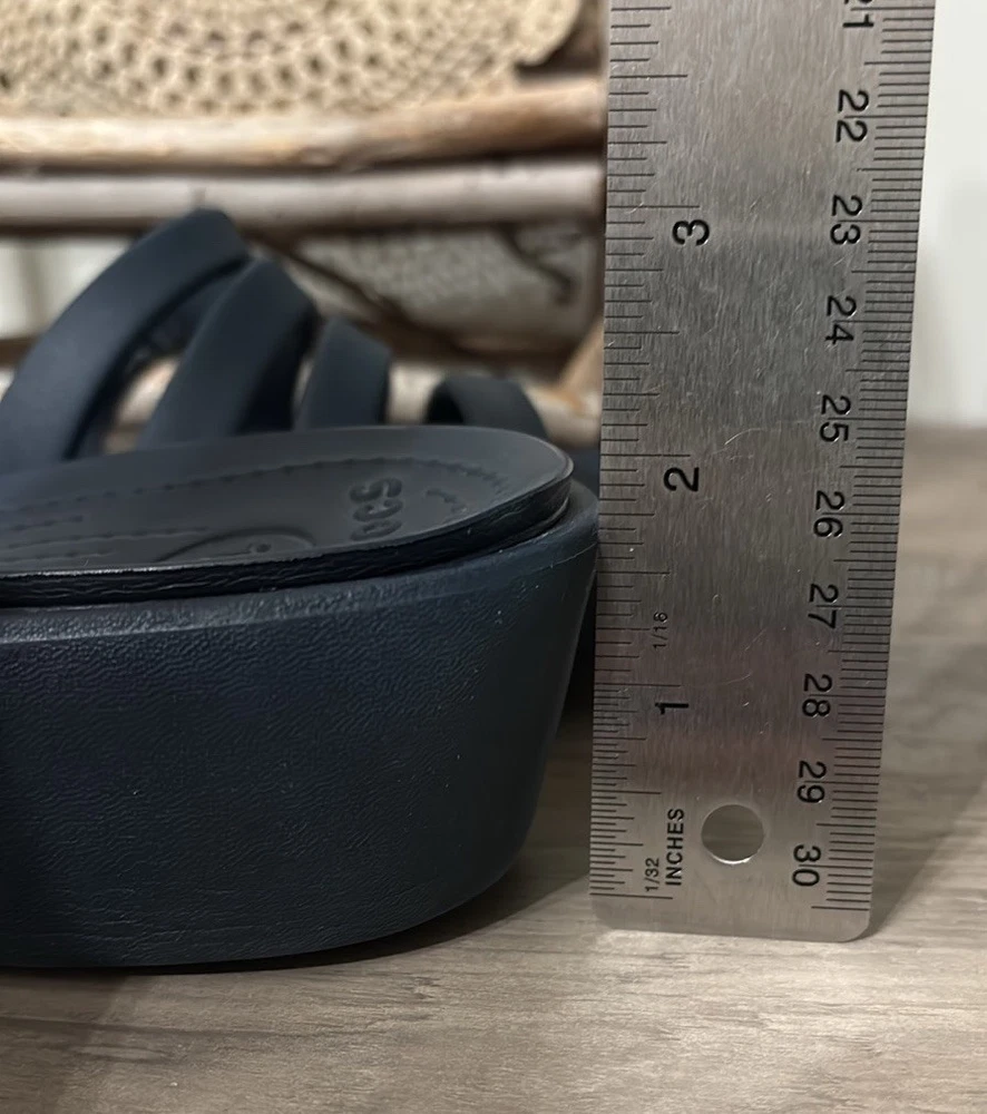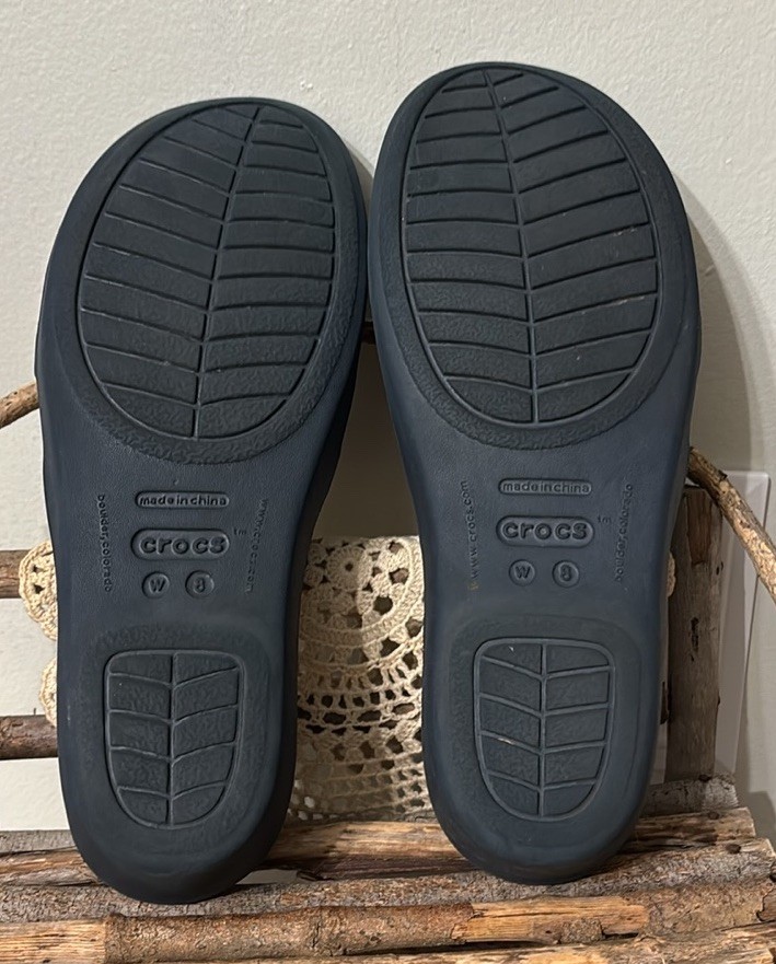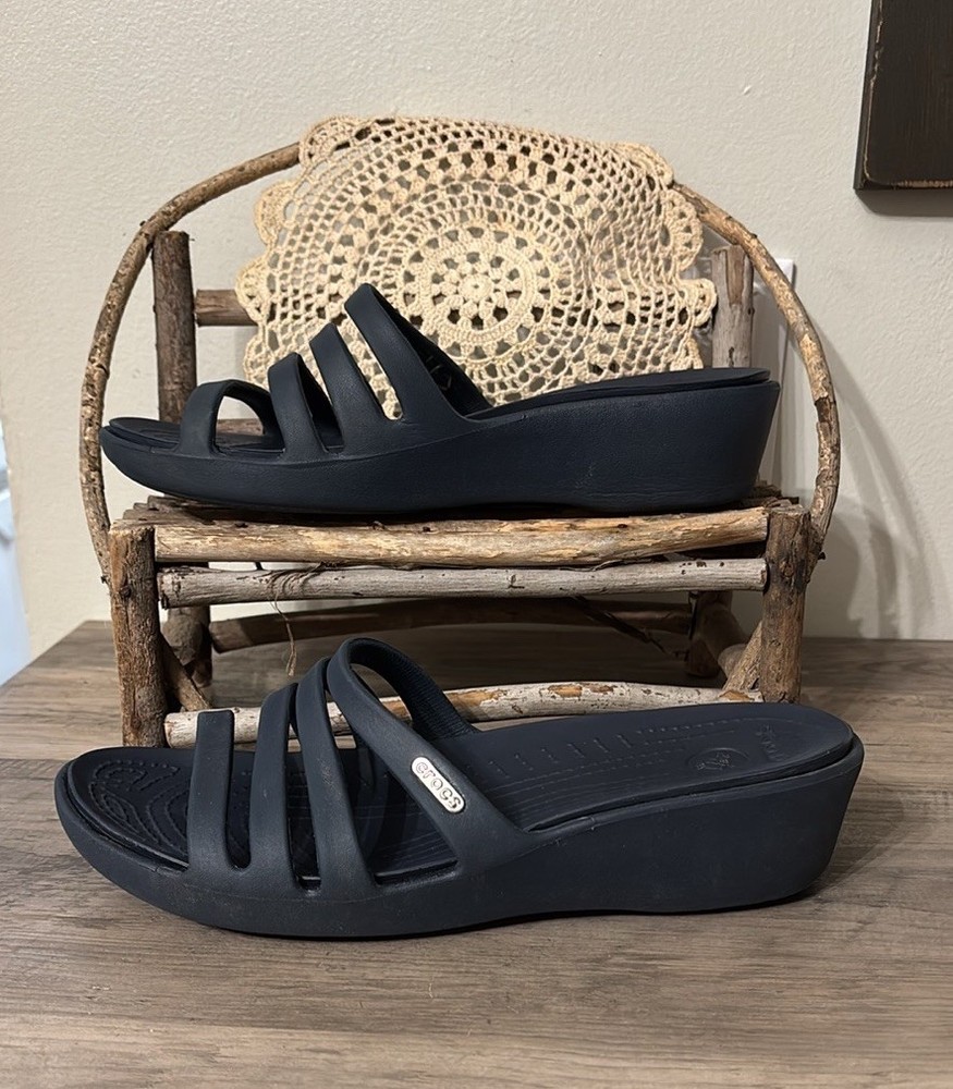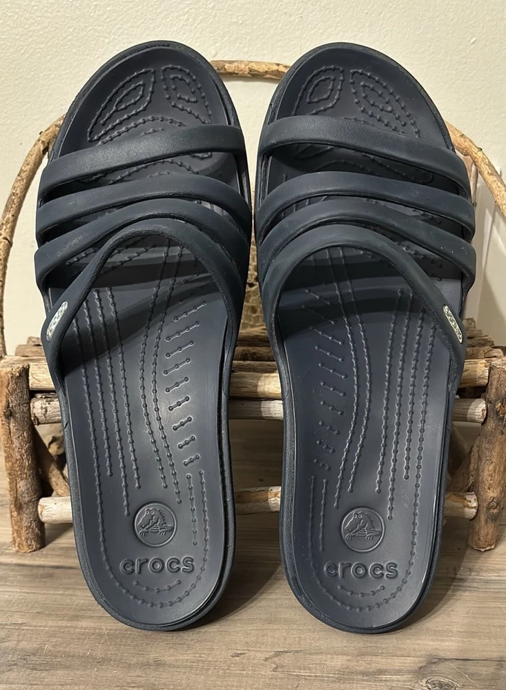 Crocs Rhonda Sandals Women's 8W NAVY Comfort Strappy Wedge Slip On Slide Beach. Condition is Pre-owned. Shipped with USPS Ground Advantage.