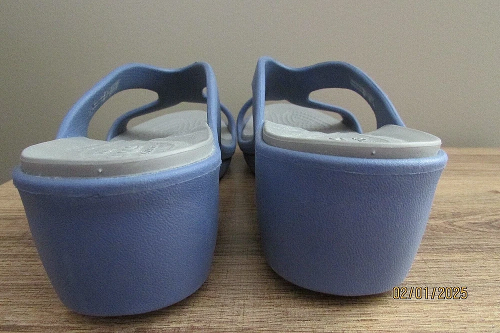 Crocs Sanrah Blue Gray Strappy slide wedge Comfort Sandals size 8 new without box smoke and pet free home