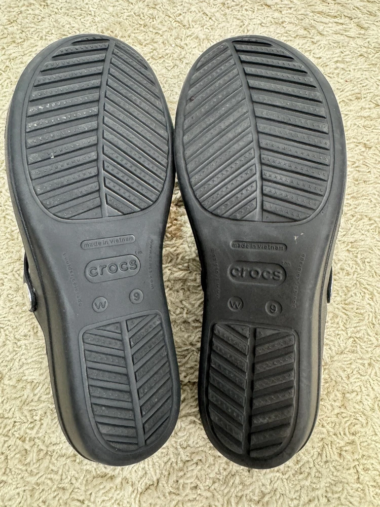 Crocs Sanrah Wedge Sandals Silver Circle Black Thong Women’s Size 9
