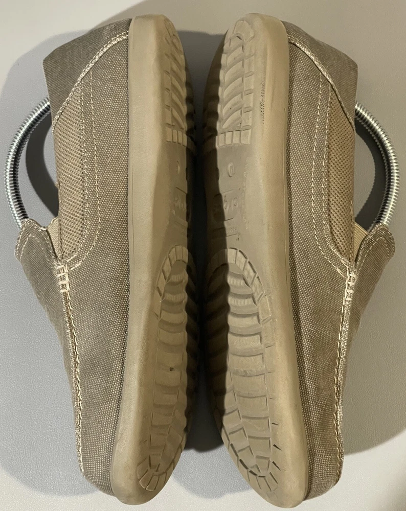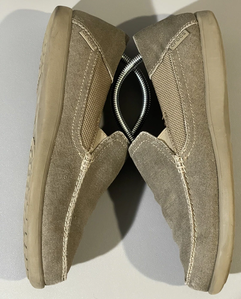 The Crocs Shoes Men's Size 14 Slip-On Canvas Comfort Loafer Shoe is designed for casual wear and offers a comfortable fit. The shoe features a solid beige canvas upper with a round toe shape and slip-on closure for easy wearing. Ideal for travel, activewear, or everyday casual use, this Crocs shoe is crafted with a fabric lining, rubber insole, and a comfortable design that is suitable for summer, fall, and spring seasons. Perfect for men looking for a versatile and easy-to-wear shoe option.