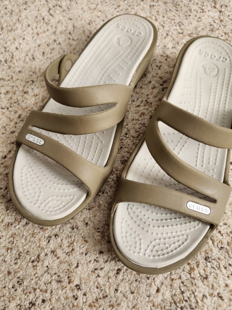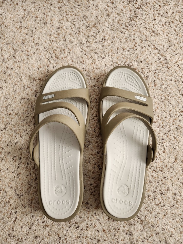 Crocs tan flip flops size 7. some wear. In good condition still make a offer🤍🖤