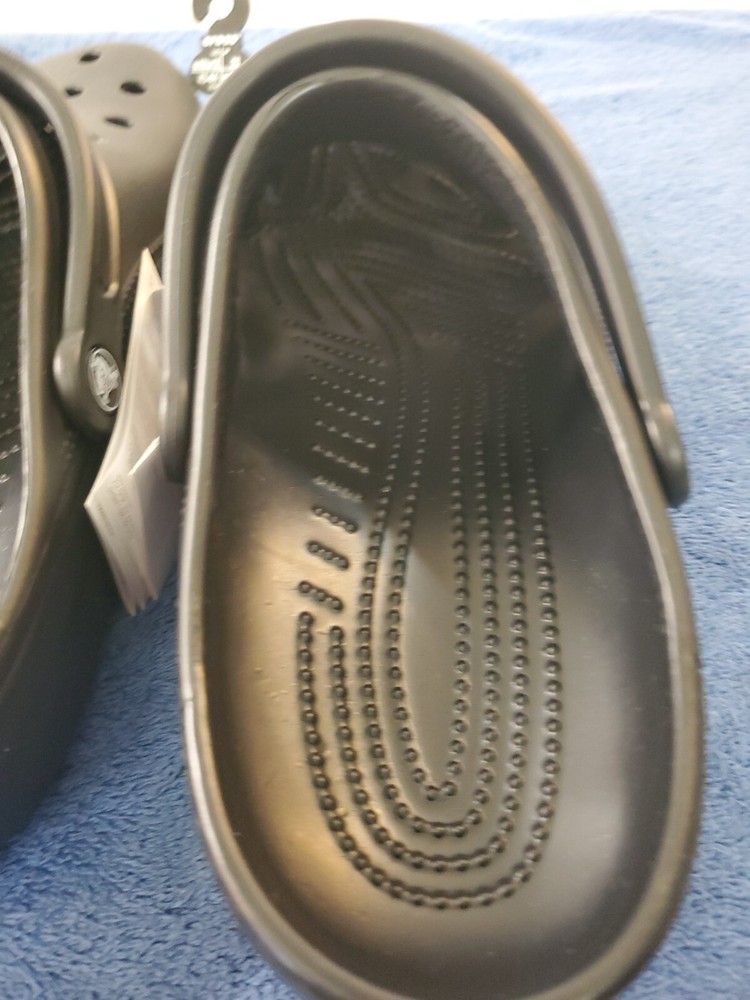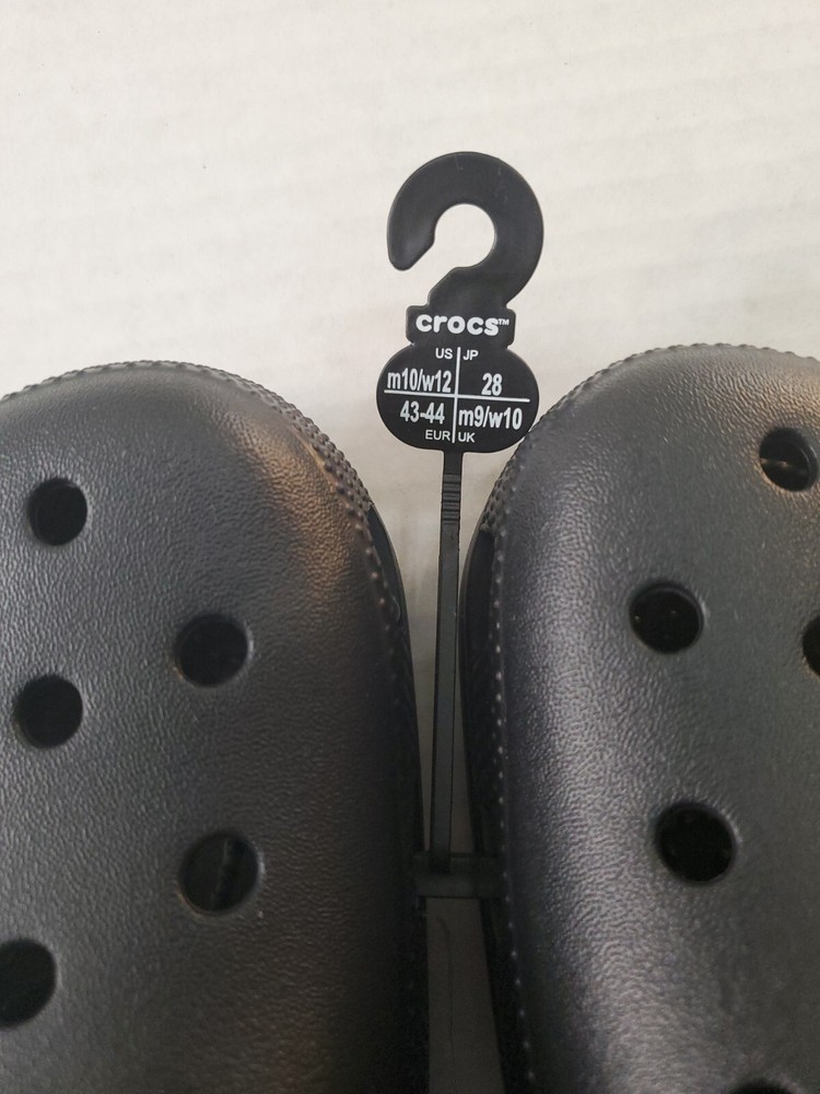 Step out in style with these classic black Crocs clogs. The perfect choice for a versatile and comfortable shoe, these sandals are made of durable rubber and are suitable for men and women alike. With a US shoe size of 10, these Crocs are a great addition to any wardrobe. The unisex Crocs Classic Clogs feature a slip-on design that is easy to wear and remove. The outsole is also made of rubber, providing excellent grip and traction. The Crocs have a simple and timeless design that is suitable for any occasion. WILL SHIP IN A STURDY BOX. WE WILL COMBINE SHIPPING ON MULTIPLE ITEMS IF POSSIBLE. PLEASE CHECK OUT OUR OTHER ITEMS. THANKS FOR LOOKING.