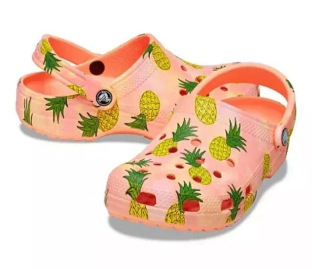 Crocs Unisex Classic Seasonal Print Clogs, Papaya/ Size 7 US Women