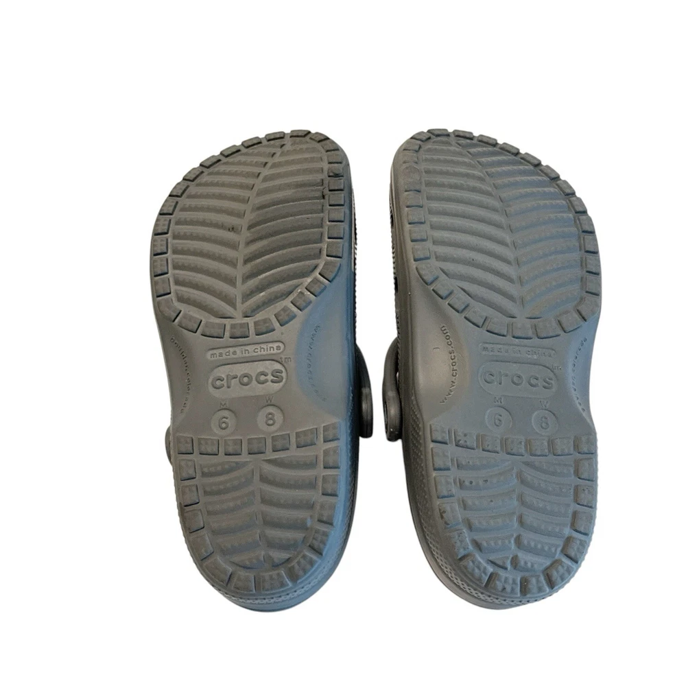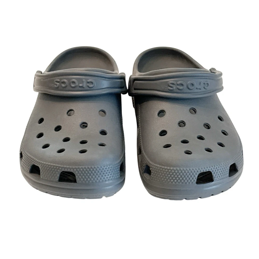 This is a pair of Crocs Unisex Classic Clog Slip Ons in gray, size W8/M6. These comfortable shoes feature a round toe shape, strap accents, and a flat heel style. They are suitable for casual, workwear, and travel occasions, with a synthetic outsole and rubber upper and insole materials. Perfect for summer, fall, and spring, these clogs are designed for walking, beach outings, and school activities. - Size W 8 M 6 - Color Gray - EUC. No flaws - Smoke and pet free home Smoke free home Please visit my store at https://www.ebay.com/str/theuniqueredhead . Thank you for your consideration. Please message me if you have any questions. I do combined shipping on my items in the store.