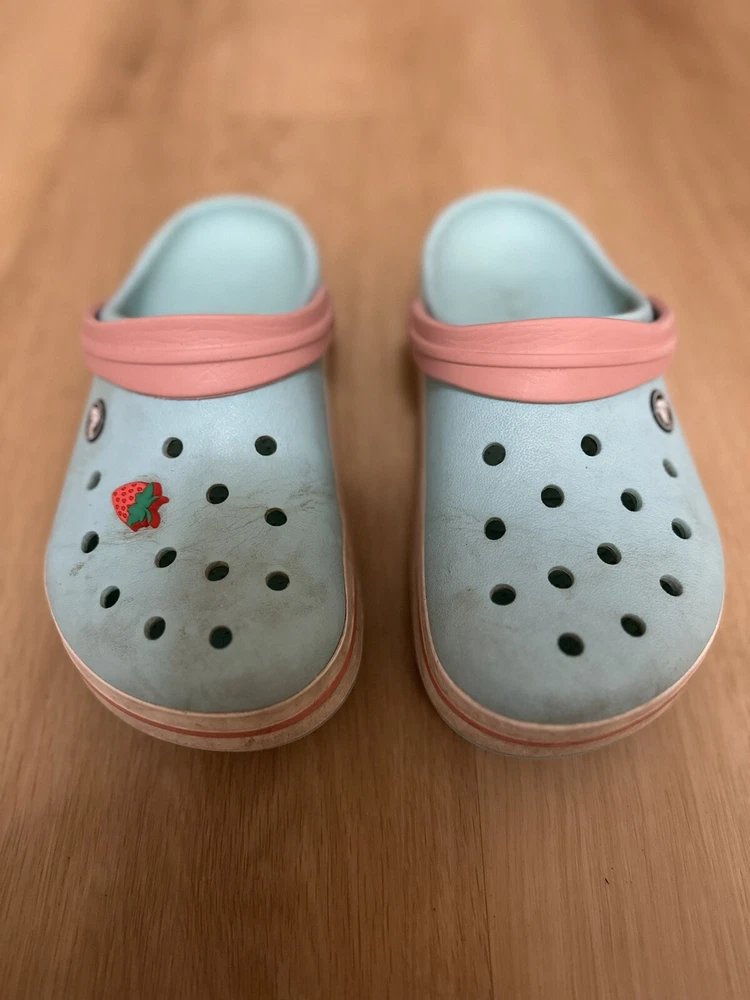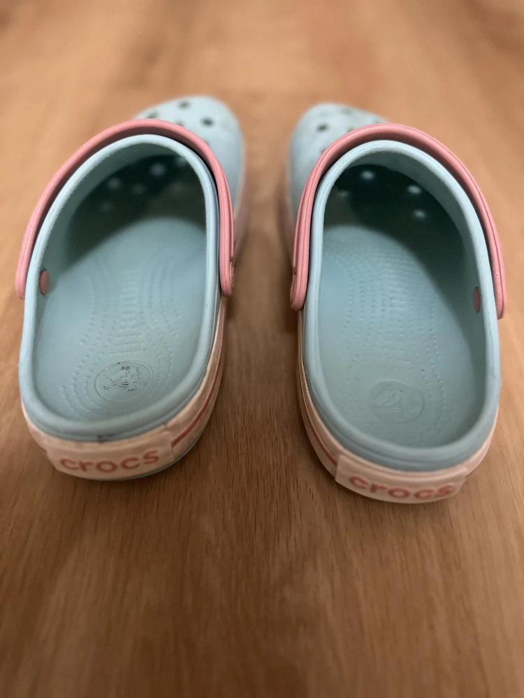 This pair of Crocs Classic clogs for women are perfect for those who prioritize comfort and practicality. Made with lightweight and breathable Croslite material, these clogs feature a closed-toe design and slip-on closure for easy wear. The multicolor blue and pink design with strap and logo accents add a touch of style to these casual shoes. Ideal for travel, activewear, and casual occasions, these clogs are suitable for walking, school, and beach activities. The flat heel style and standard shoe width provide a comfortable fit, while the rubber outsole, insole, and lining ensure durability and support. These Crocs Comfort Slide clogs are a must-have addition to any woman's shoe collection.