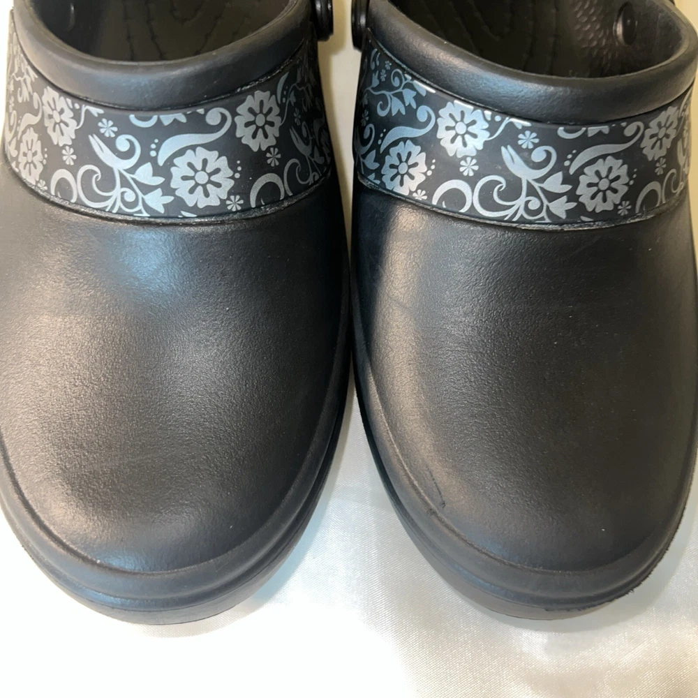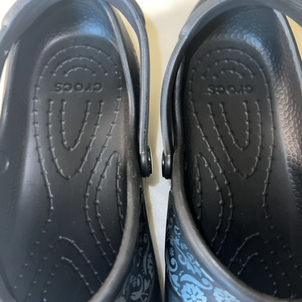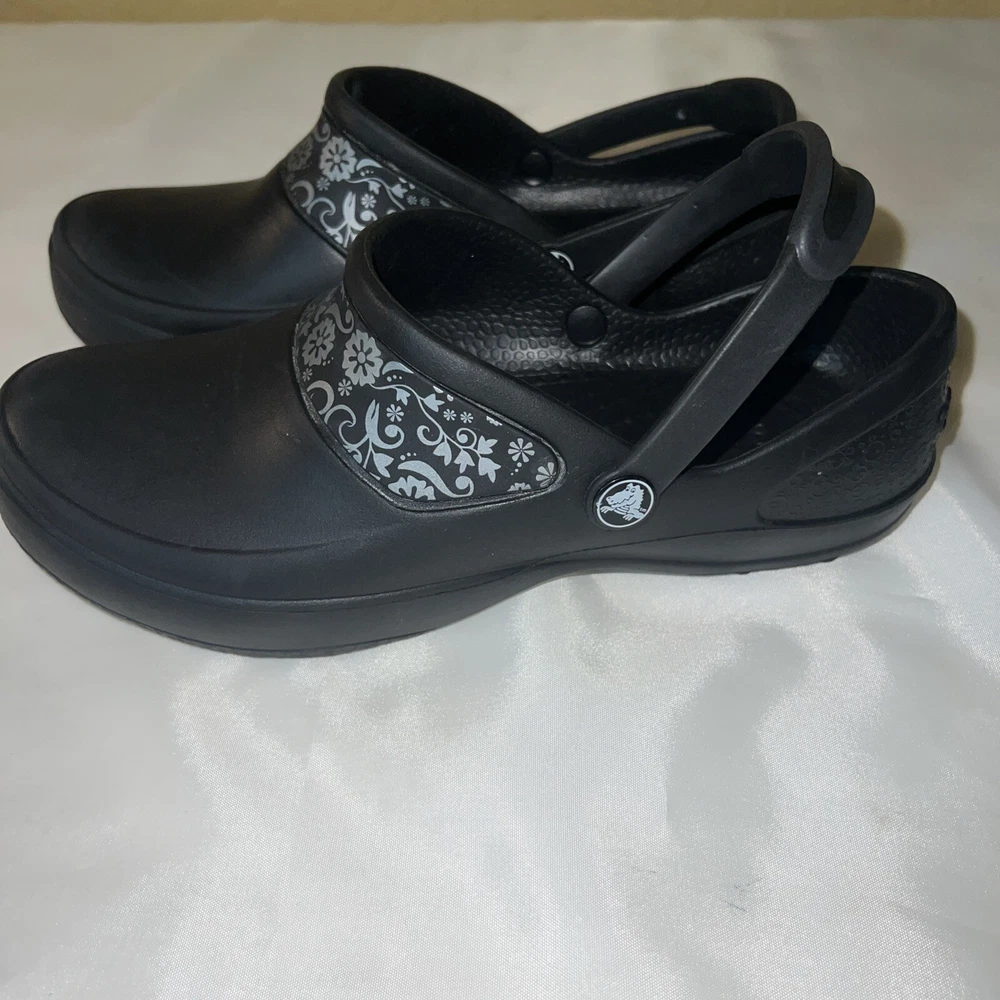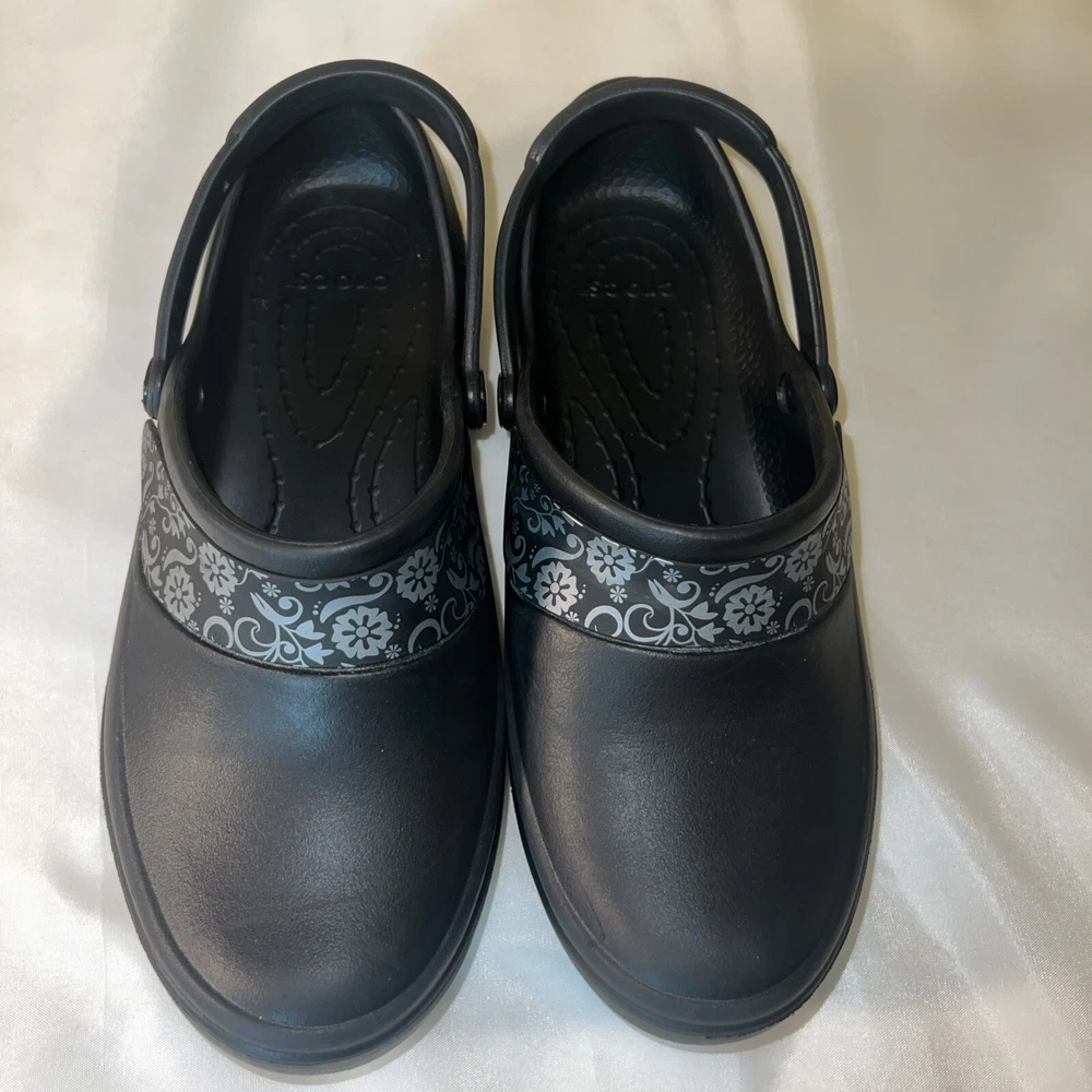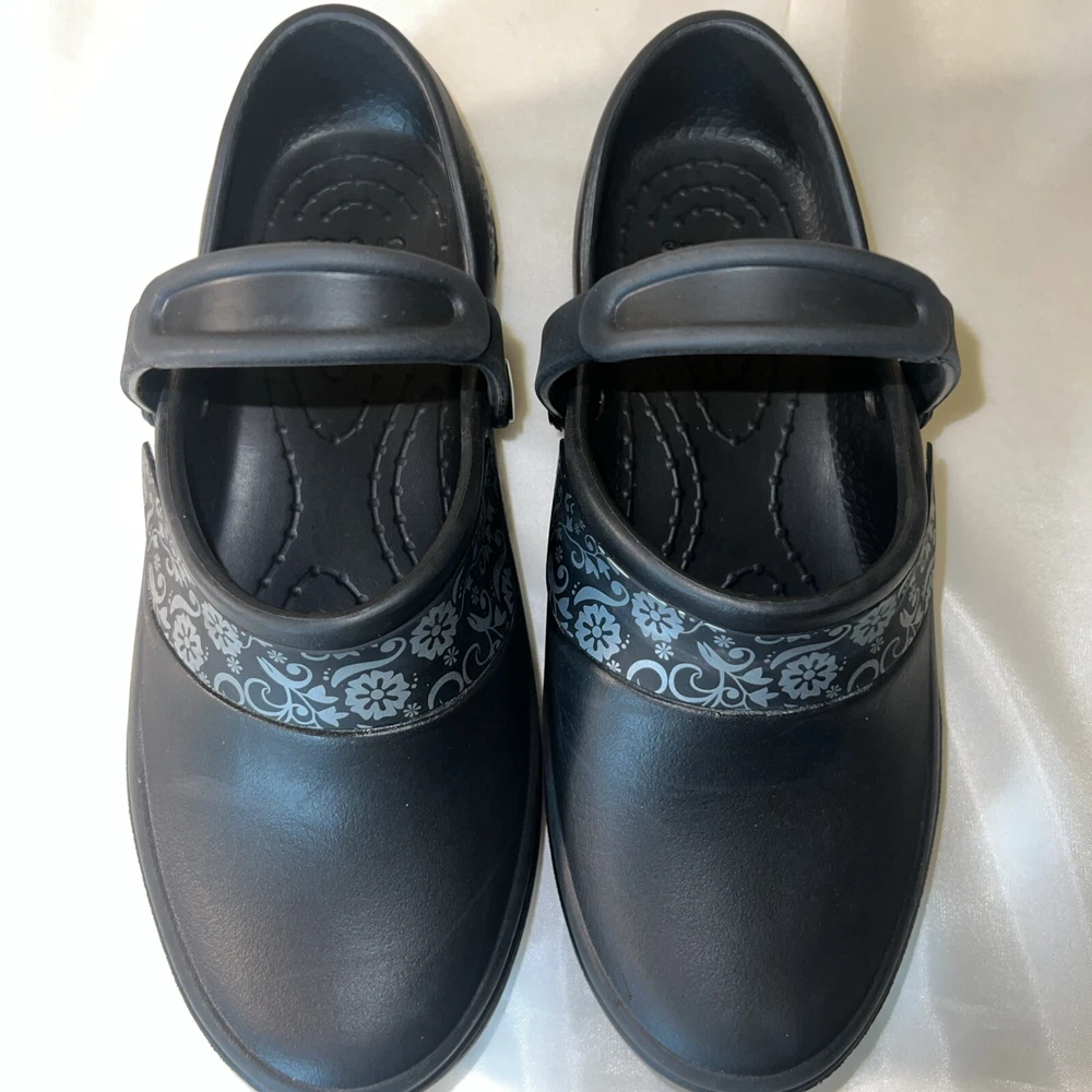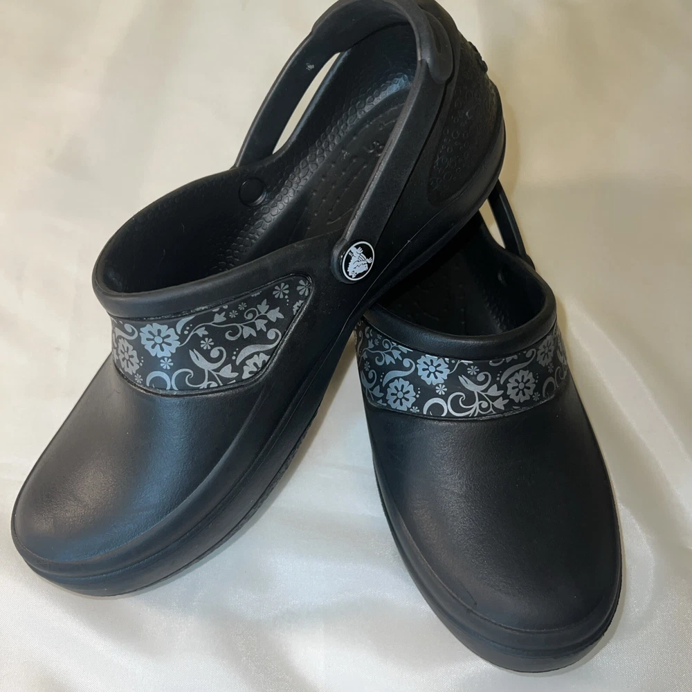 Crocs Women's Size 8 Mercy Work Clog Black Silver Floral Trim Slip Resistant
