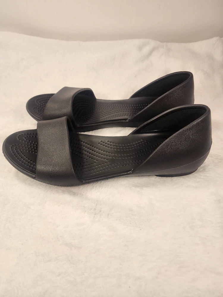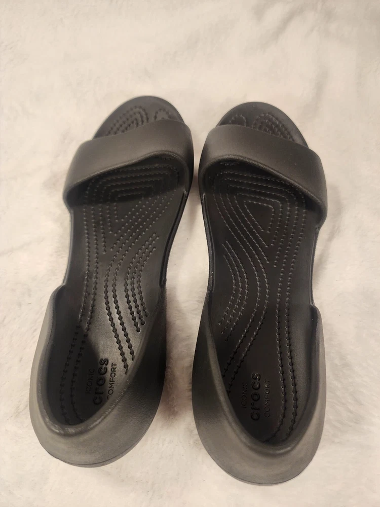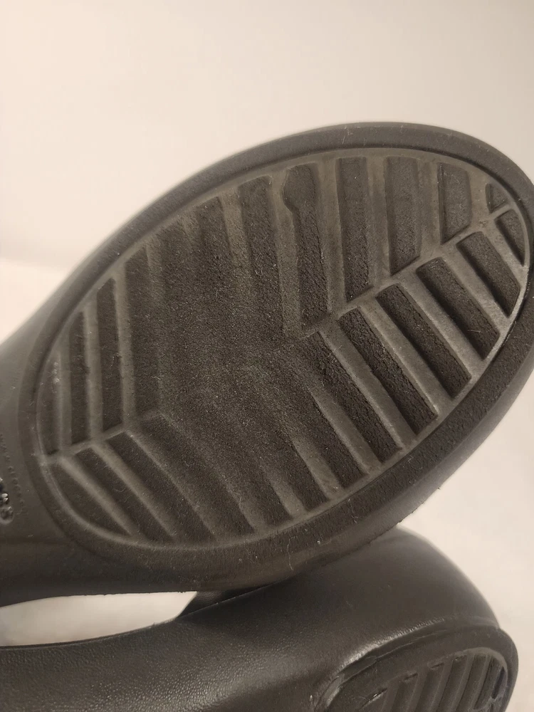 These black Crocs slip-on sandals are perfect for women who prioritize comfort and practicality. The lightweight and breathable features make them ideal for travel and casual wear during the summer, fall, and spring seasons. The synthetic lining material and low heel height provide a comfortable fit for all-day wear. The rubber upper material and solid pattern offer a classic and versatile look that can be paired with any outfit. These sandals are perfect for women who want a reliable and comfortable shoe option without compromising on style.