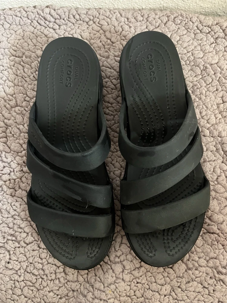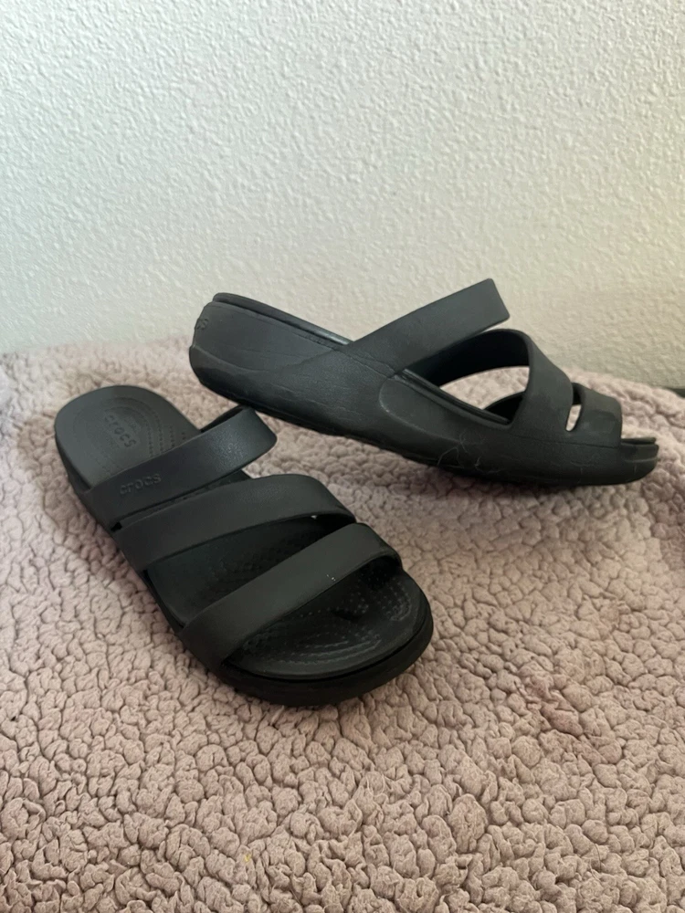 Crocs - Women’s Strappy Black Sandals Size 8