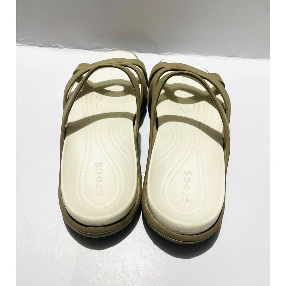 Crocs comfort sandals Tan Slide summer beach strappy waterproof women's 8W