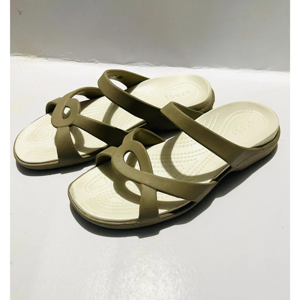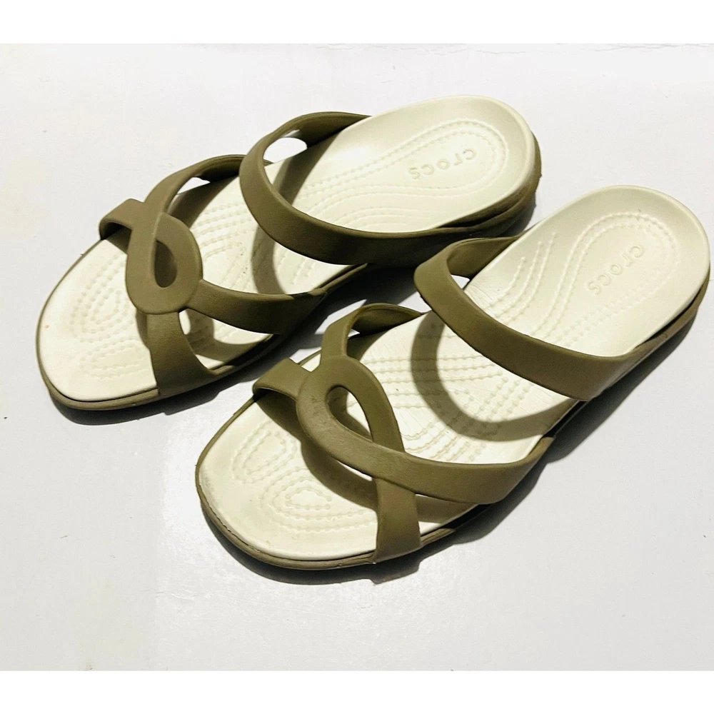 Crocs comfort sandals Tan Slide summer strappy waterproof women's 8W