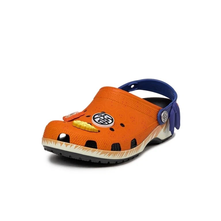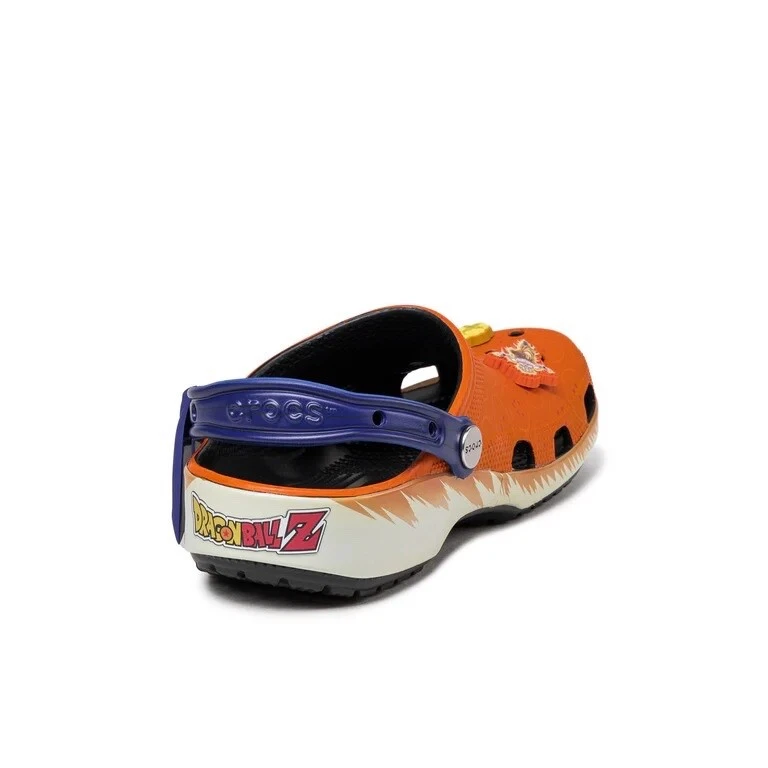 Crocs x Dragon Ball Z Goku is a limited edition clog featuring a colorful design inspired by the popular anime series. Made with a lightweight and breathable synthetic upper material, these Crocs offer comfort for casual wear. The collaboration between Crocs and Dragon Ball Z brings a fun and unique style to this shoe, perfect for fans of the series. releases feb 25 all sales are final