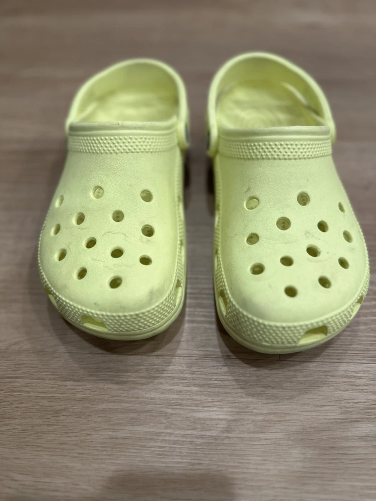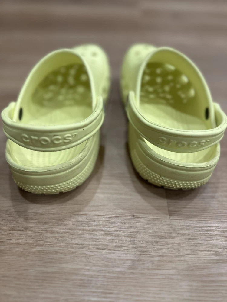 Embrace everyday comfort with the Crocs Classic Clogs in a vibrant sunflower yellow. These iconic clogs are designed for women who appreciate a blend of practicality and style. The lightweight construction, coupled with a durable rubber upper and toe cap, ensures long-lasting wear and ease of maintenance. Perfect for a range of casual settings, including beach outings, walks, or simply strolling through school, these clogs offer a snug fit in a size 9 (W9/M7) with a standard shoe width. The low top shaft and flat heel underscore the shoe's understated design, making them an ideal companion for those who value comfort and breathability in their footwear.