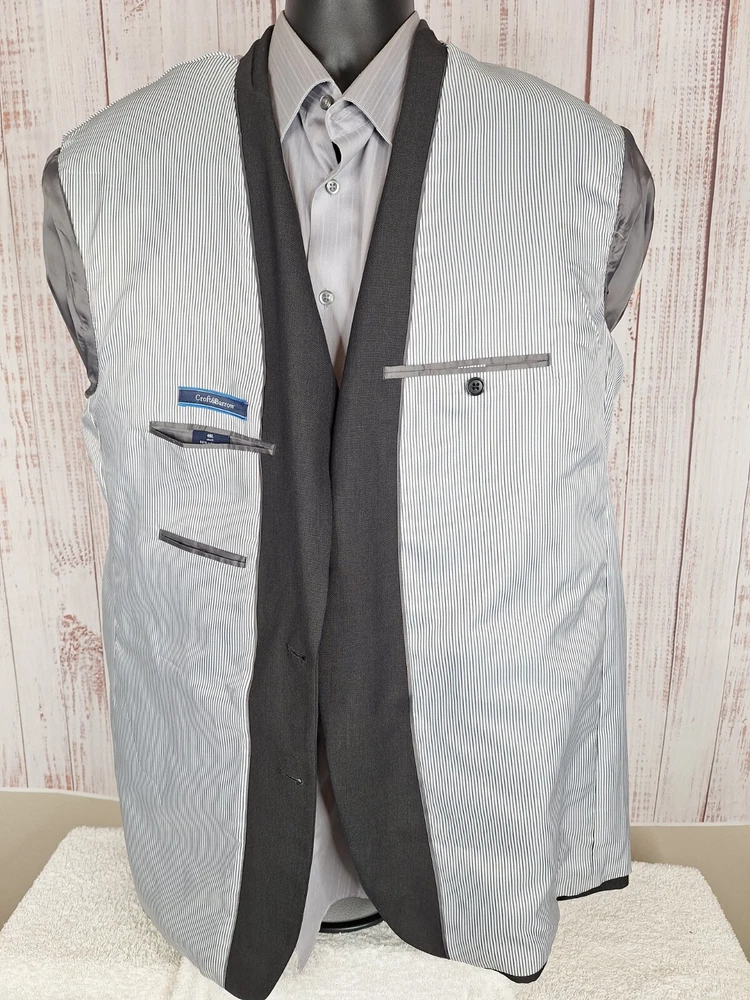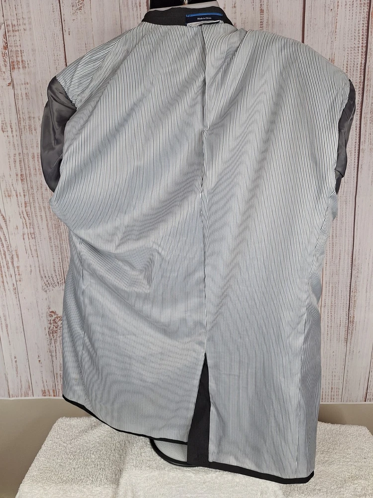 $ 26.4Joseph A Bank 2 Piece Suit Mens 48R 40X29 Black Stripe Wool Single Vented
