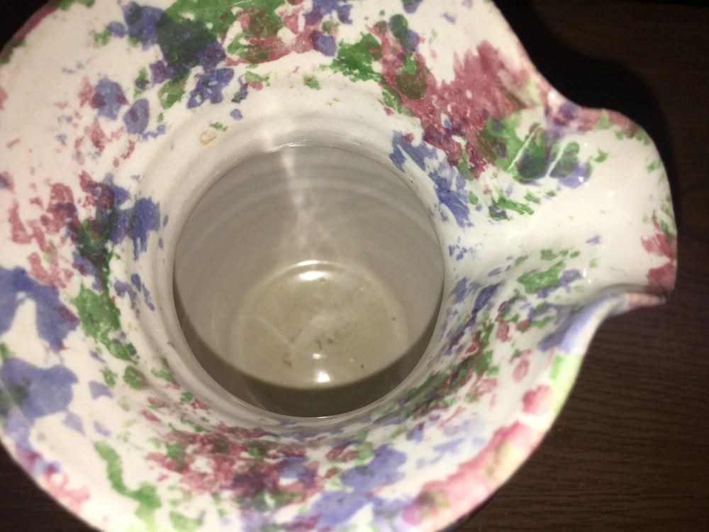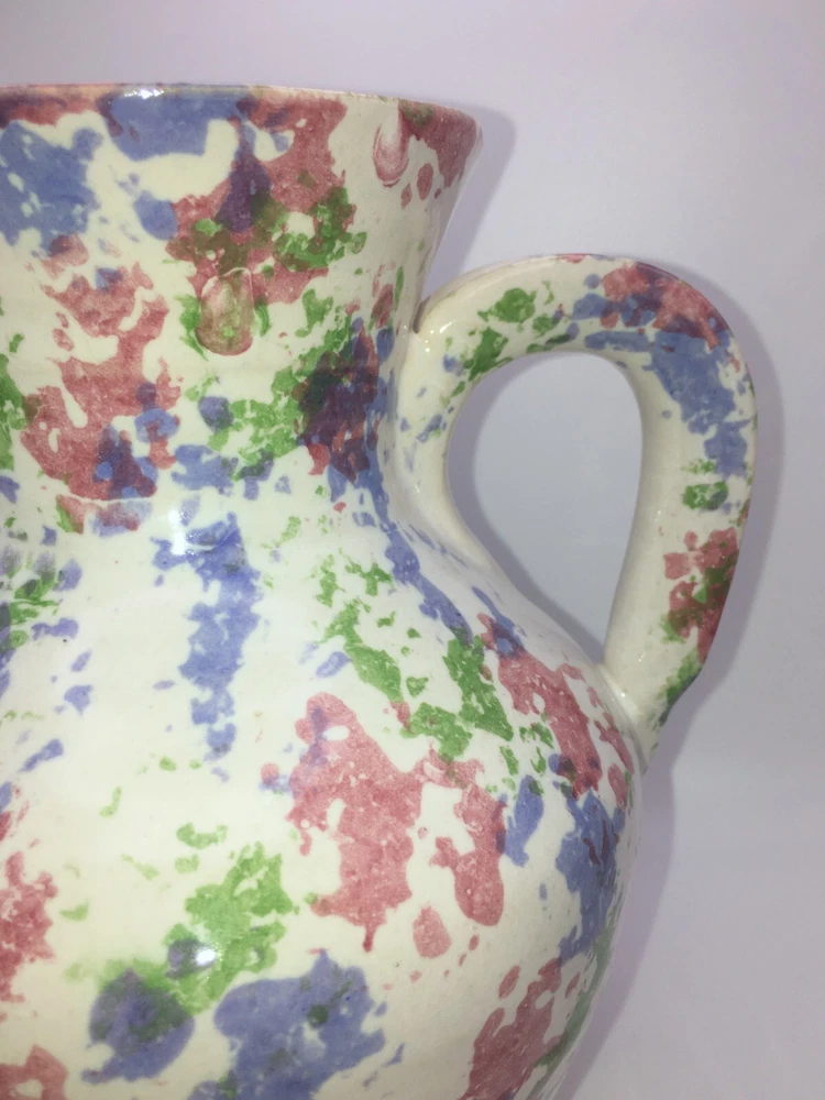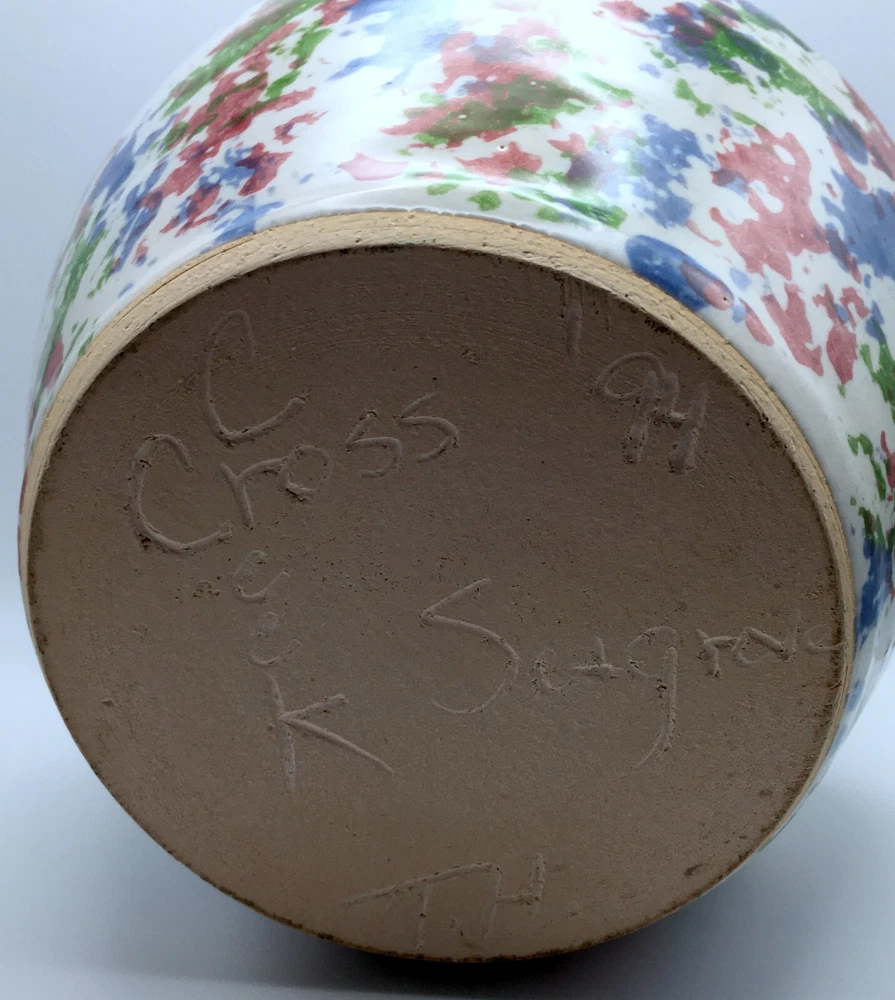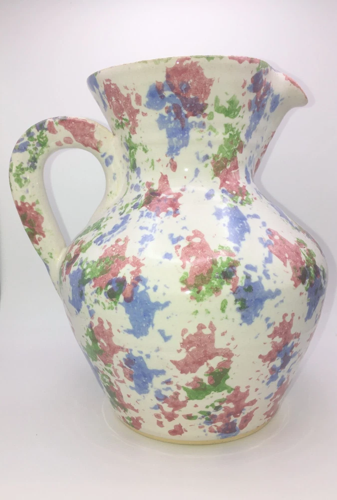 Cross Creek Seagrove NC Abstract Pottery Pitcher Artist Signed 1994 Cross Creek Pottery ~ Seagrove, North Carolina ~ Handmade Pottery Pitcher Abstract design pattern ~ Original Art Pottery Multi-colored all over and 2" down inside the mouth shades of light blues, greens, mauve, pinks, on white background In beautiful condition. No chips or cracks. Signed "Cross Creek '94 Seagrove T.H." Pictures are of the exact item you will receive. Zoom in for details. Please message me with any questions. All sales final. Carefully packed and shipped Thank you for shopping with Daisy! Here's a Link to MY STORE for more great vintage, eclectic collectibles and estate treasures: https://www.ebay.com/str/daisysdishes