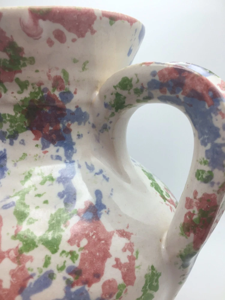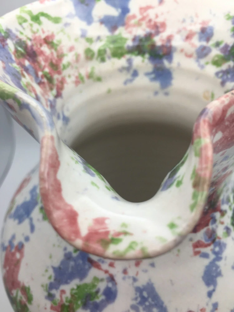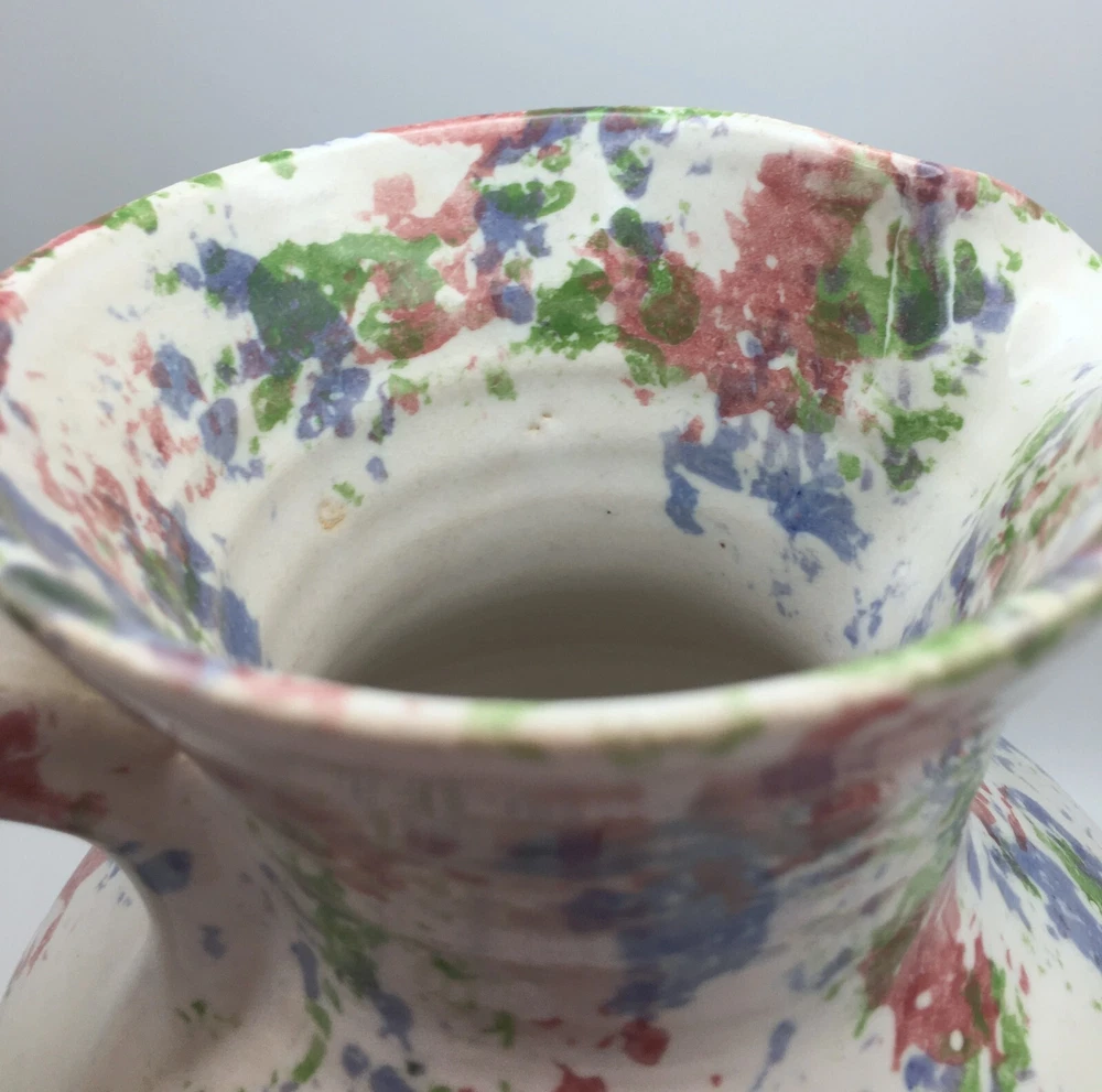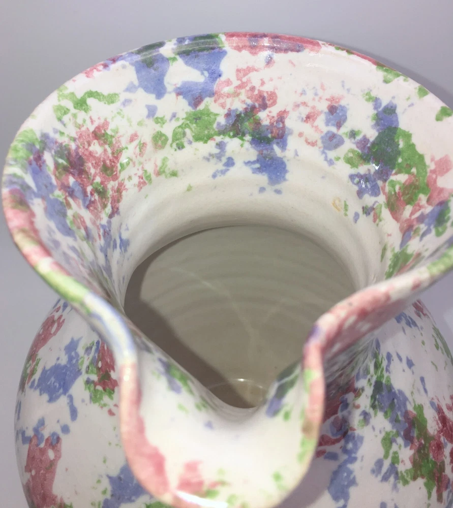 Cross Creek Seagrove NC Abstract Pottery Pitcher Artist Signed 1994 Cross Creek Pottery ~ Seagrove, North Carolina ~ Handmade Pottery Pitcher Abstract design pattern ~ Original Art Pottery Multi-colored all over and 2" down inside the mouth shades of light blues, greens, mauve, pinks, on white background In beautiful condition. No chips or cracks. Signed "Cross Creek '94 Seagrove T.H." Pictures are of the exact item you will receive. Zoom in for details. Please message me with any questions. All sales final. Carefully packed and shipped Thank you for shopping with Daisy! Here's a Link to MY STORE for more great vintage, eclectic collectibles and estate treasures: https://www.ebay.com/str/daisysdishes