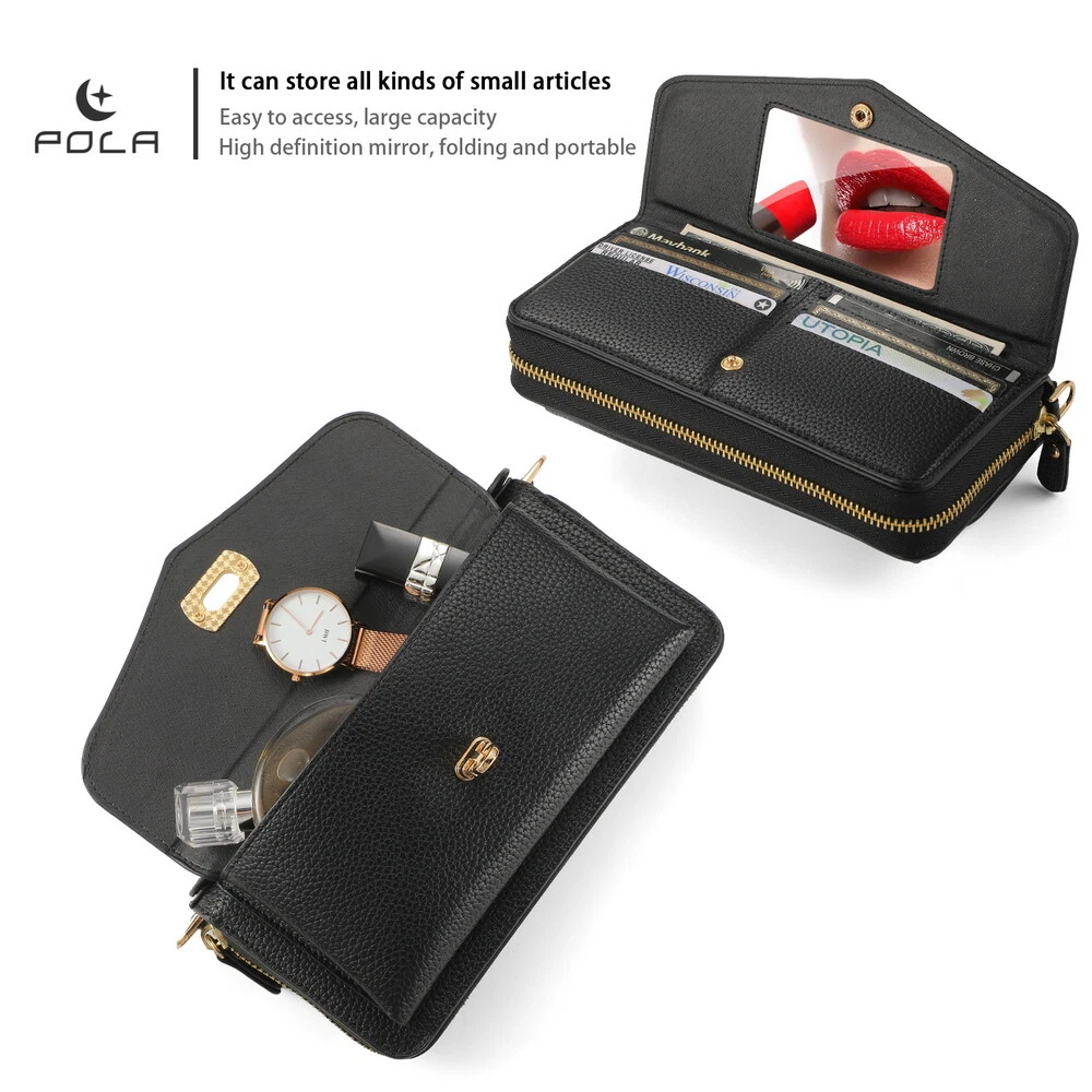 Description Women Leather Wallet Crossbody Phone Bag Removable Magnetic Case Cover For iPhone Samsung Video will open in a new window Using the eBay App? Paste link into a browser window: [isdntekvideo] [Large-capacity wallet] Built-in multifunctional cash purse, card slots, and side card holder. Card slot zipper wallet can store more credit cards, cash, change, keys, etc. RFID blocking protection design, prevent your private credit card information from stealing by data thief, keep your private property in safety. ️Due to the different sizes of mobile phones, the size of wallets and the number of card slots also vary. If necessary, please contact our customer service to confirm it for you. [Slim Detachable Back Shell] Both the inner shell and leather case have built-in magnets, which can stably fix the inner shell in the wallet without shaking. When you need to slip it into jeans pockets, you can toss out the bulky outer wallet part, can be used as a seperate single back cover, now you can take photos with the slim TPU shell. This new detachable wallet means to bring more flexibility to everyone. [Magnetic Magsafe Charging Cover] Built-in magnetic circle on the back shell, that support Apple Magsafe wireless charger for iPhone 12 and newer iPhone. ️NOTE : For iPhone 6/6s/6 Plus/6s Plus/7/8/SE 2020/SE 2022/X/XS/XS Max/XR/11/11 Pro/11 Pro Max and Samsung series Phone cover does not support magsafe charging. [Essential for women] There is a small bag and a small mirror on the outside of the wallet. The small bag can store some cosmetics and makeup tools, such as lipstick, eyebrow pencil, etc. With it, you can touch up makeup at any time. [Safe carrying] Included the telescopic wristband, hand strap, crossbody strap, you can easily carry it in different ways. Package Content: 1x Zipper Purse Detachable Leather Wallet Case Magnetic Cover 1x Crossbody Strap 1x Hand strap Please Read The Following Carefully! ⭐️ The pictures shows as a sample, perhaps it looks like the hole position may not match your phone, while the item you get will be delivered with your chosen model. Don't worry about the wrong hole position. ⭐️ Physical and pictures colour may be slightly different, because the brightness problem and color settings. If you are concerned about color differences, please do not purchase it. Please kindly understand, thanks! ⭐️ This product is compatible with more phone models, but not all are listed. If you cannot find your phone model, Please feel free contact us. ⭐️ If you do not know your phone model, please check "General -- About " or "System--About Phone" in setting.