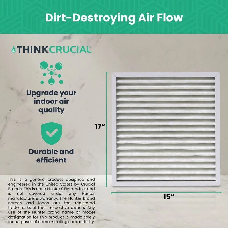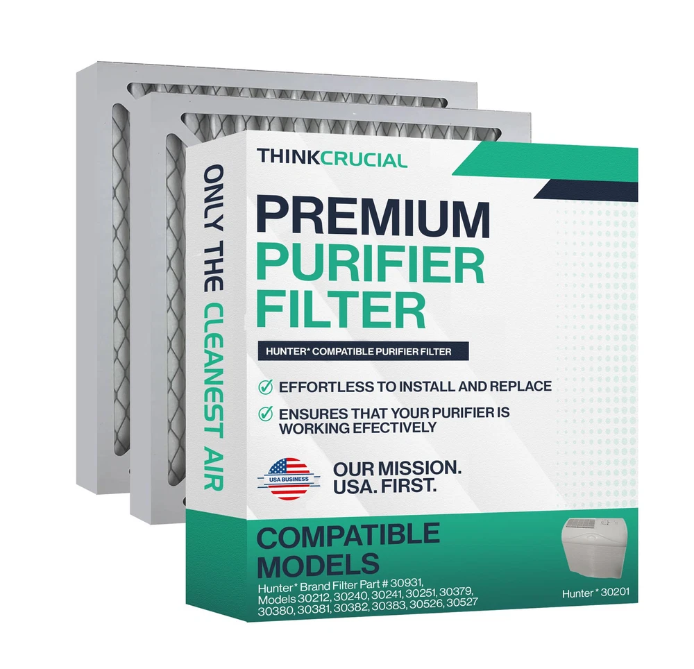 2 PACK OF AIR PURIFIER FILTER COMPATIBLE WITH HUNTER BRAND FILTER PART # 30931, MODELS 30201, 30212, 301213, 30240, 30241, 30251, 30378, 30379, 30380, 30381, 30382, 30383, 30526, 30527. CLEAN AND HEALTHY LIFESTYLE: Compatible with HUNTER brand. Our air filter part ensures deep and clean surfaces. SIMPLE AND EASY TO INSTALL: Switch out in less than five (5) minutes, providing time efficiency. Get back to daily activity quickly and make a big difference with air quality in the process. Simply remove the older and dirty filter and replace. Enjoy a clean, fresh, premium, heavy-duty equipment. DURABLE REPLACEMENT AIR FILTER: The long filtration air cleaner has a long life. Replace the purifier every month for optimal performance or one (1) to two (2) per month depending upon usage. When a clogged or dirty bag is not changed, it can cause the equipment to work harder and impact utility bills. We deliver high quality, durable and long-lasting replacements. They are an efficient investment. Easy to maintain for the long run. CRUCIAL AIR manufactures premium quality filters and purifier replacement kit parts and stands behind the quality and workmanship of all our products. We maintain a thorough quality control process to ensure compatibility with the models listed above.