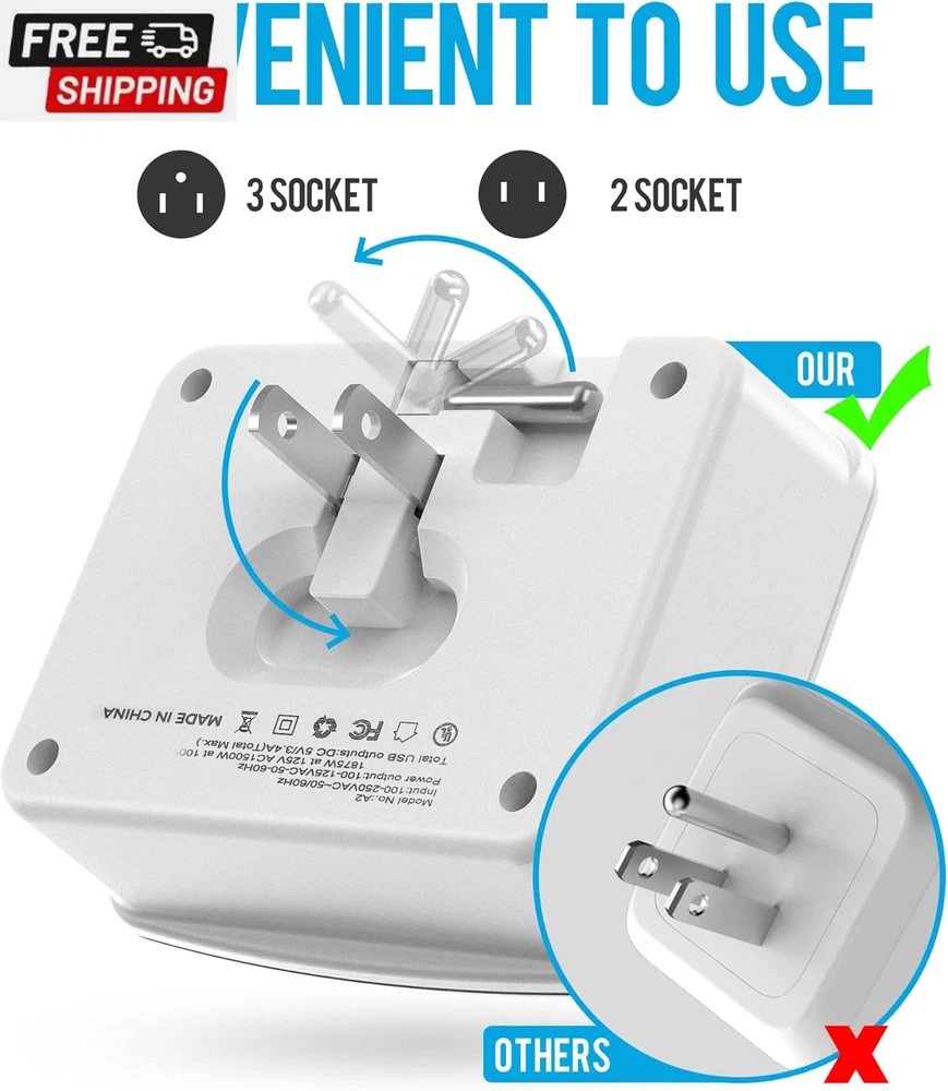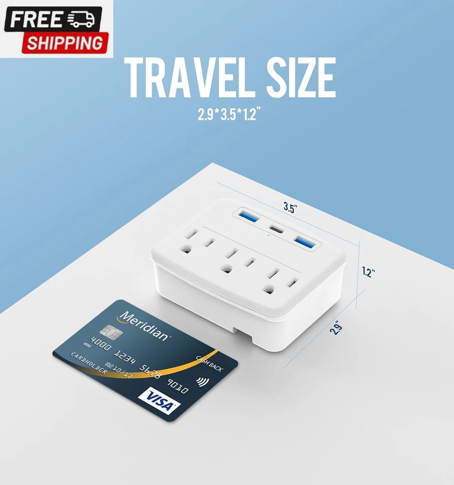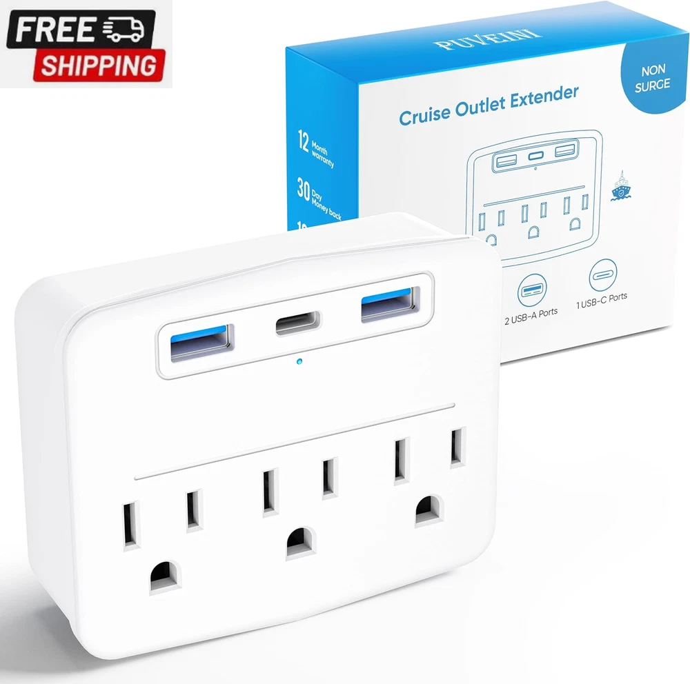 Fast Shipping On All Items 30 Days Money Guarantee Customer Support Excellent Service 100% Satisfaction Satisfaction Guaranteed Cruise Power Strip Foldable White Non Surge Protector with USB C Outlets 3A Total, Multi Plug Wall Socket, Cruise Essentials Accessories Must-Haves for Travel Ship, Home, Japan Applicable Specification Item Shape Rectangle Amperage 3 Amps Total Usb Ports 4 Maximum Current 3 Amps Color 2.4A White Material Polymer Item Dimensions L x W 3.5"L x 2.9"W Compatible Devices Hair Dryer, Set Top Box, Noise Maker, Freezer, Fax Machine, Modem, Iron, Tablet, Cellular Phone, Mixer Grinder, Microwave Oven, Gaming Console, Refrigerator, Smartwatch, Laptop, Projector, Radio, Air Conditioner, Television, Printer, Electric Fountain, Rice Cooker, Toaster, Lamp, DVD Player, MP3 Home Theater, Light, E-Reader, Personal Computer, Smartphone, Router, Scanner, Speaker, Camera, Water Boiler, Monitor, Coffee Audio Sound System, Fan, Heater, Juicer Plug Type Type B Number of Ports 6 Voltage 125 Recommended Uses For Product Travel Special Features Surge Protection, Lightweight, Foldable Power Plug Type B - 3 pin (North American) Special Feature Surge Protection, Lightweight, Foldable Number of Outlets 6 Total Power Outlets 6 2.9 "w x 3.5 "w. Item Description Our Brands - Our Puveini, focus on customer expectations, if you want other designs can also inform us through Amazon, our research and design department will focus on this! Have a good trip, friends! 6 IN 1 USB Wall Outlet Extender - 4 AC outlets, 2 USB-C ports and 2 USB-A ports, (USB output total 3A, 2.4A per port) ideal for cell phones, tablets, power banks, and other electrical chargers, No need to carry an extra adapter Folded Plug Easy to Carry - The plug can be folded, convenient for travel. Small size, 3.5*2.9*1.2 inches does not take up space. Light Weight, only 150g, easy to carry without burden. 2 Prong to 2 Prong Outlet Adapter - Light and small size for travel. This 1 to 6 plug extender can be converted from 2 prong and 3 prong, even suitable for traveling in Japan. Cruise Accessories Must Haves - Our brand always promises:1. anyone who buys our cruise accessories and cannot take them on the cruise, informs the model and reason for the cruise, and can enjoy the free cruise power strip or return service 2. those who use our multi-plug outlet for less than 12 months and are damaged due to non-human reasons can enjoy free new one. Product Description Puveini 6-in-1 Foldable Design Cruise Ship Approved Travel Power Strip Non Surge Protector with USB C Outlets Puveini foldable non surge protector power strip is compact and lightweight, and offer 3 ac outlets and 2 USB-A ports, 1 USB-C port to charge 6 devices simultanously. And it's also compatible for phone, tablet, camera and other USB charging electronics. Just need carry 1 cruise power strip to meet your all needs. Foldable Non Surge Protector Multi Plug Outlet Design for Travel The most innovative foldable design on the market New function: satisfy the use of two-plug and three-plug at the same time Choose the better material Feature upgrade Note for Travel: Appliances higher than 1875W are not supported SPCS MAX: 125V/1875W Latest Design - travel foldable multi plug outlet Cruise Approved - No Surge Protector Cruise Essentials - 6-1 Multi Plug Outlet Ultra small size - 3.5*1.2*2.9 Cruise Power Strip - You may like to konw Q: Why choose Puveini cruise power strip? A:Dear Customer, considering the convenience of travel, the latest foldable travel socket on the market has been designed by us. It has both two-plug and three-plug use functions, no surge protector power strip, allowing you to take it anywhere you want to use it. Q: What do you get when you choose Puveini cruise power strip? A: You will have a perfect shopping experience. And, no matter what problem arises, Puveini will provide you with an impeccable solution. Putting the customer first is the exactly purpose of our brand. Q:Is our cruise power strip safe? A:Dear, this is a small travel plug. It is very important to note that the maximum load we can bear is 1875W ! Which can be used for daily mobile phones, tablets, computers, desk lamps, cameras and other low-power electrical appliances, but not suitable for high-power electrical appliances such as hair dryers',ovens and soon. Our travel power strip hope to make your life more convenient. About us We offer the best prices around on high quality products. Our E-store includes media such as books, movies, music and games while offering electronics, toys, sporting apparel, clothing, tools, general home, garden items and more. Shipping We are always working hard to ensure your package arrives as soon as possible. Please understand that some factors like weather, high postal traffic, and the performance of shipping companies are outside of our control. We offer free shipping to the lower 48 states and ship within 2-3 business days of payment, usually sooner. We do not accept P.O. Boxes. Please provide a physical address. For shipping outside of the continental USA, we only use eBay's Global Shipping Program.The item is shipped to KY and then sent to the rest of the world. International customers are responsible for all duties and taxes. Continue to check out to calculate costs for shipping the item to your country. Messages regarding eBay's Global Shipping Program MUST be directed at eBay EXCLUSIVELY. Returns We offer a 30-Day Return Policy on items in which you are not completely satisfied with. You have the option of a full-refund or an exchange of the item. No returns are available on items shipped outside of the USA Satisfaction We try over very best to make sure every customer is completely satisfied. If there's a problem, message us! We're happy to help. Payment Options Shop With Confidence