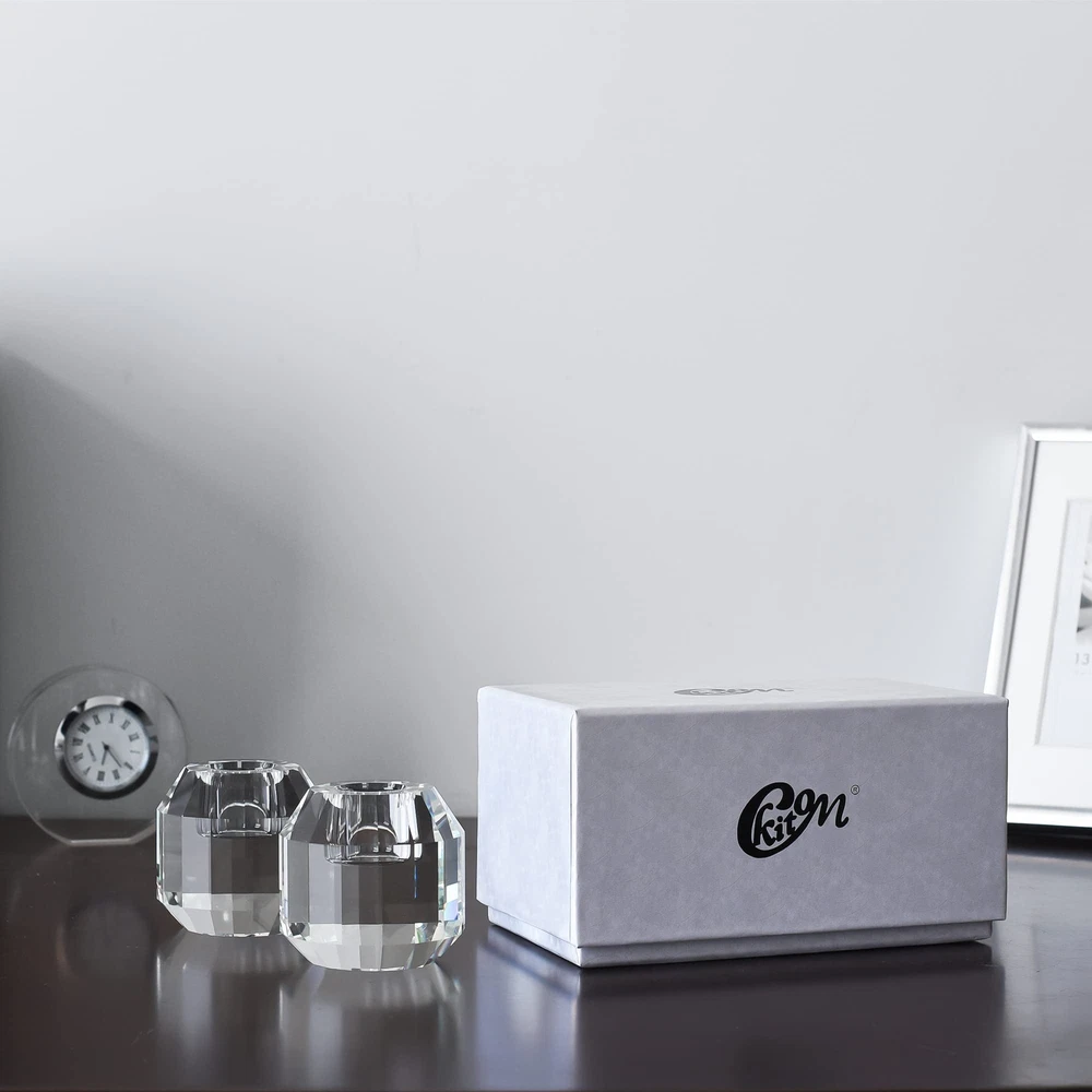 Crystal Candle Holders Set of 2, 2.36" x 2.36" x 2.36" Crystal Candlestick Holders. CRYSTAL CANDLE HOLDERS: Made from superior quality k9 crystals in a sleek and modern design, superb craftsmanship and premium construction ensure that these crystal candle holders are pure, sparkling and elegant. EXQUISITE CRAFTSMANSHIP: handcrafted fine crystal with superior weight and stability, highlighting the natural beauty of candlelight. SET OF 2 CANDLESTICKS: 2.36" x 2.36" x 2.36" (60 x 60 x 60cm), This crystal taper candle holders comes with a convenient 2 candle holder set that perfectly with any tabletop decor. GIVE YOU A SPECIAL HOLIDAY: This taper candle holder is suitable for taper candles. They can be placed in the living room, bar, dining table, etc. to create a romantic atmosphere for weddings, Mother's Day, Birthday party. EXQUISITE PACKAGING: Delivered in delicate package, making it a great gift for anniversaries, Valentine's Day, Mother's Day, and weddings!